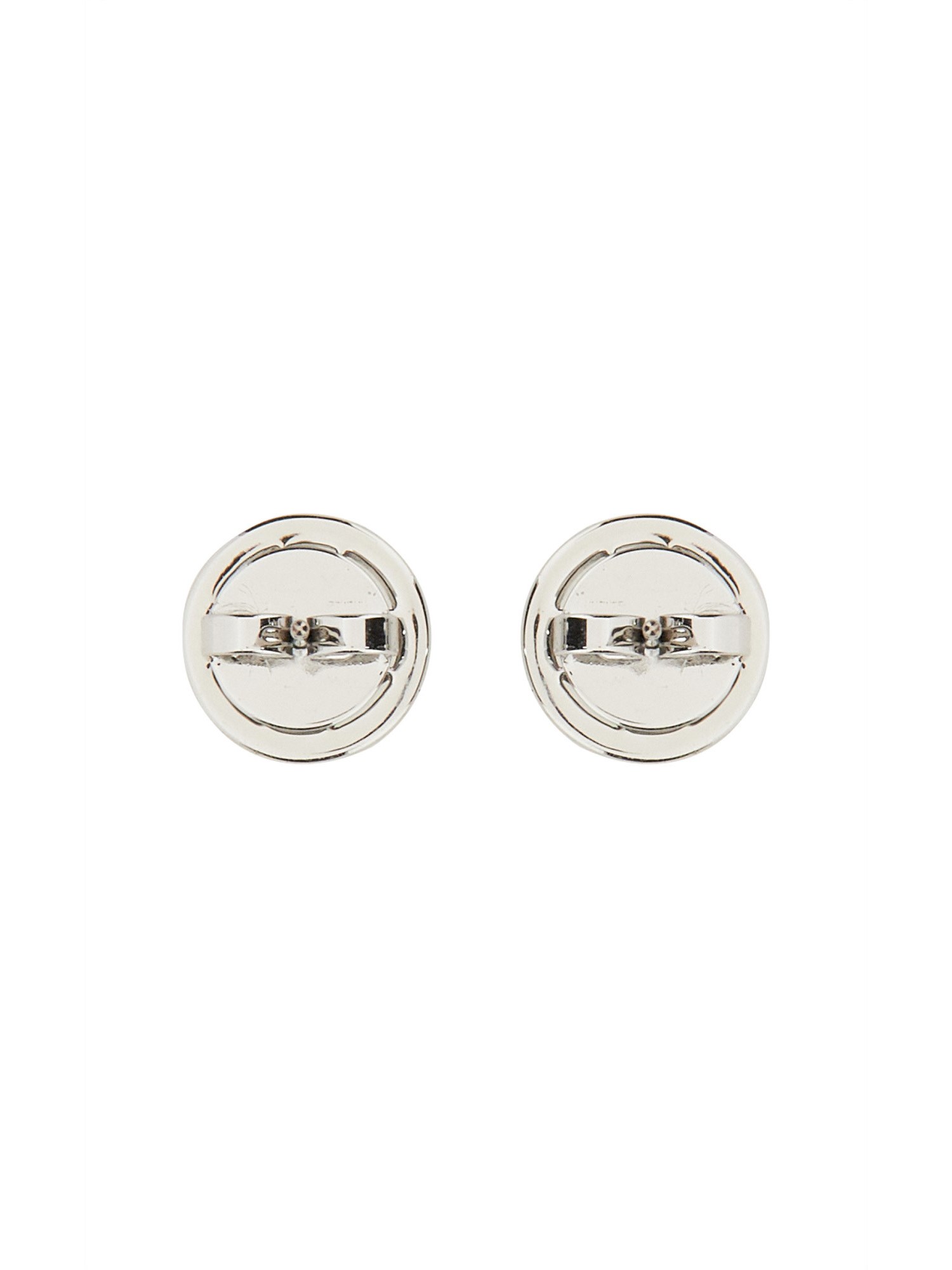 - CHIUSURA AD INCASTRO SUL RETRO- BORCHIA SFERICA CON ICONA LOGO E CRISTALLI- 80% OTTONE, 10% SWAROVSKI, 10% TITANIO