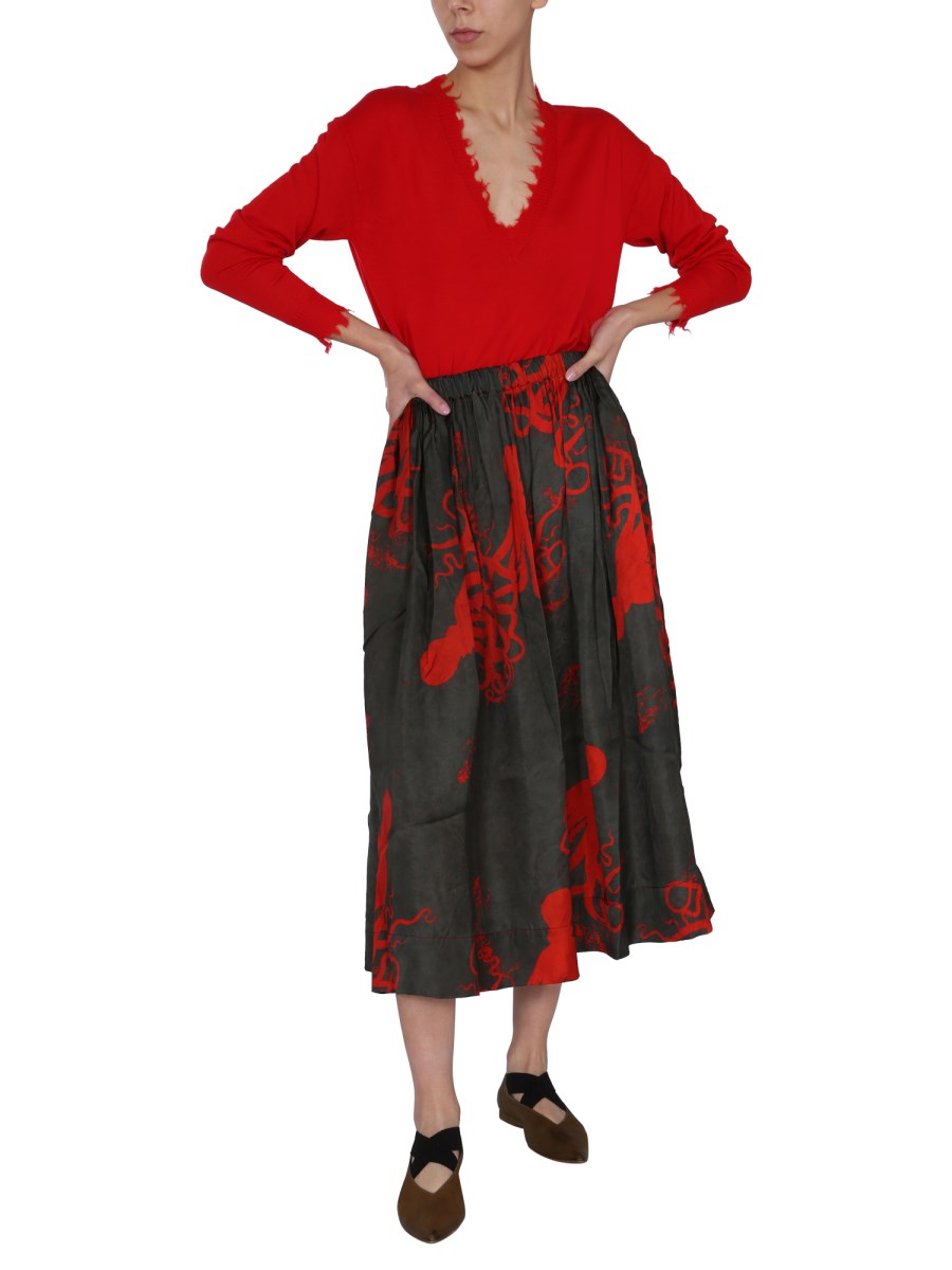 - ELASTICO IN VITA - STAMPA SU TUTTA LA SUPERFICIE - 100% CUPRO- MADE IN ITALY- LA MODELLA È ALTA 180 CM E INDOSSA LA TAGLIA S
