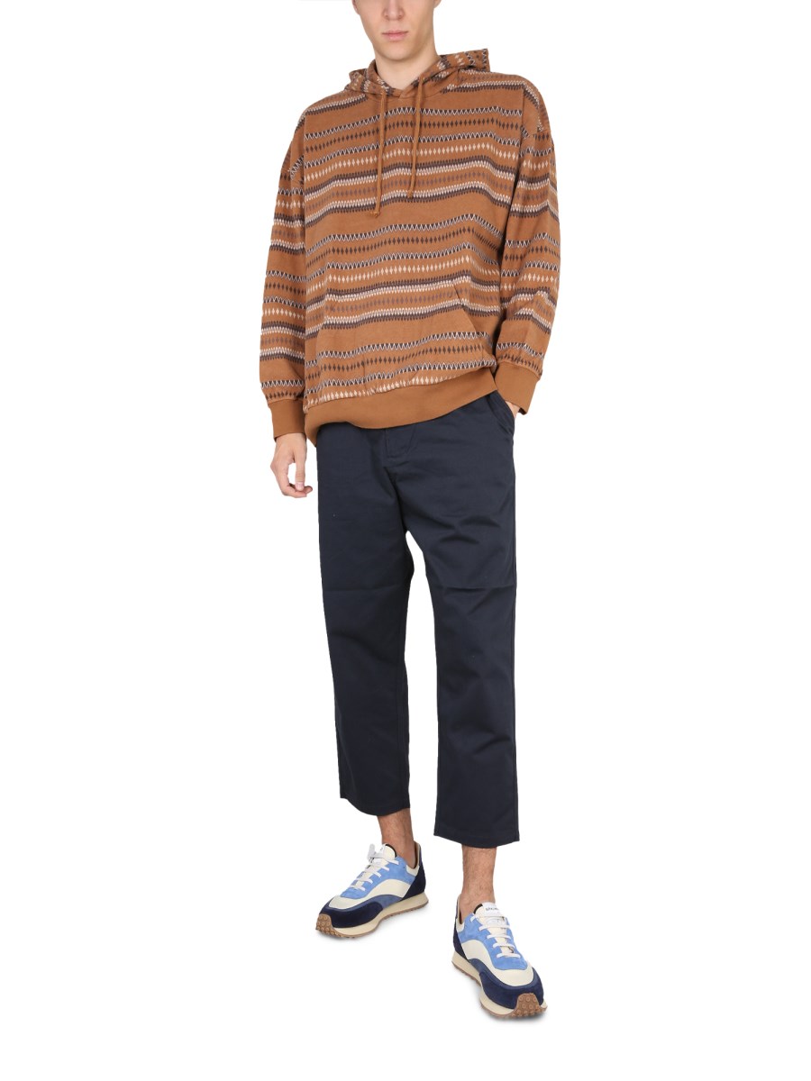 Questi pantaloni cropped di Universal Works sono realizzati in cotone morbido ed elastico. Hanno un elastico in vita rifinito con una coulisse, due tasche posteriori e due tasche laterali. Sono perfetti da indossare in ufficio o nel weekend. I pantaloni sono realizzati in cotone morbido e resistente che è stato sottoposto a un trattamento speciale per conferirgli un aspetto unico.
