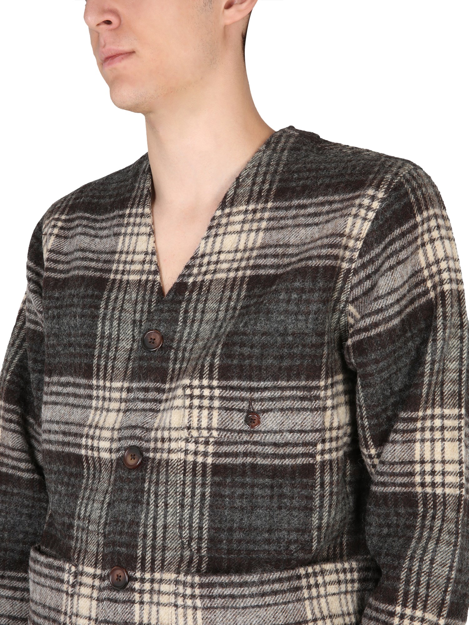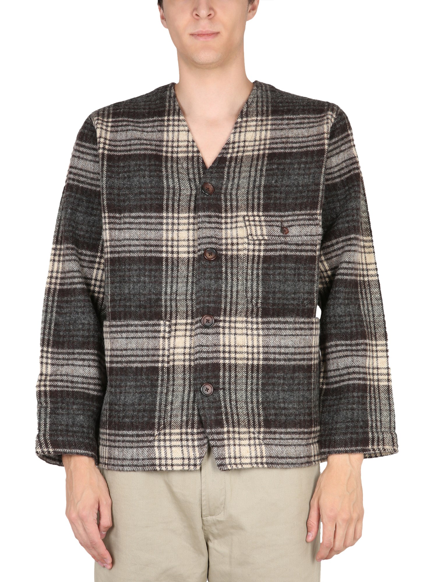 Questa è una giacca di lana di alta qualità di Universal Works. È realizzata in un eccellente materiale di lana spessa, pensato per essere utilizzato nelle stagioni più fredde. Ha una chiusura frontale con scollo a V ed è rifinita con bottoni. Ha una vestibilità tradizionale, quindi si adatta a diversi tipi di corpo.