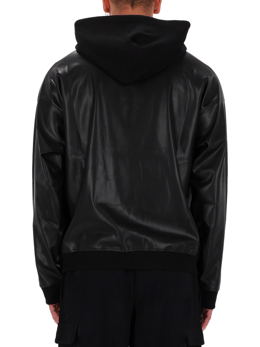 FELPA IN COTONE E ECOPELLE CON CAPPUCCIO