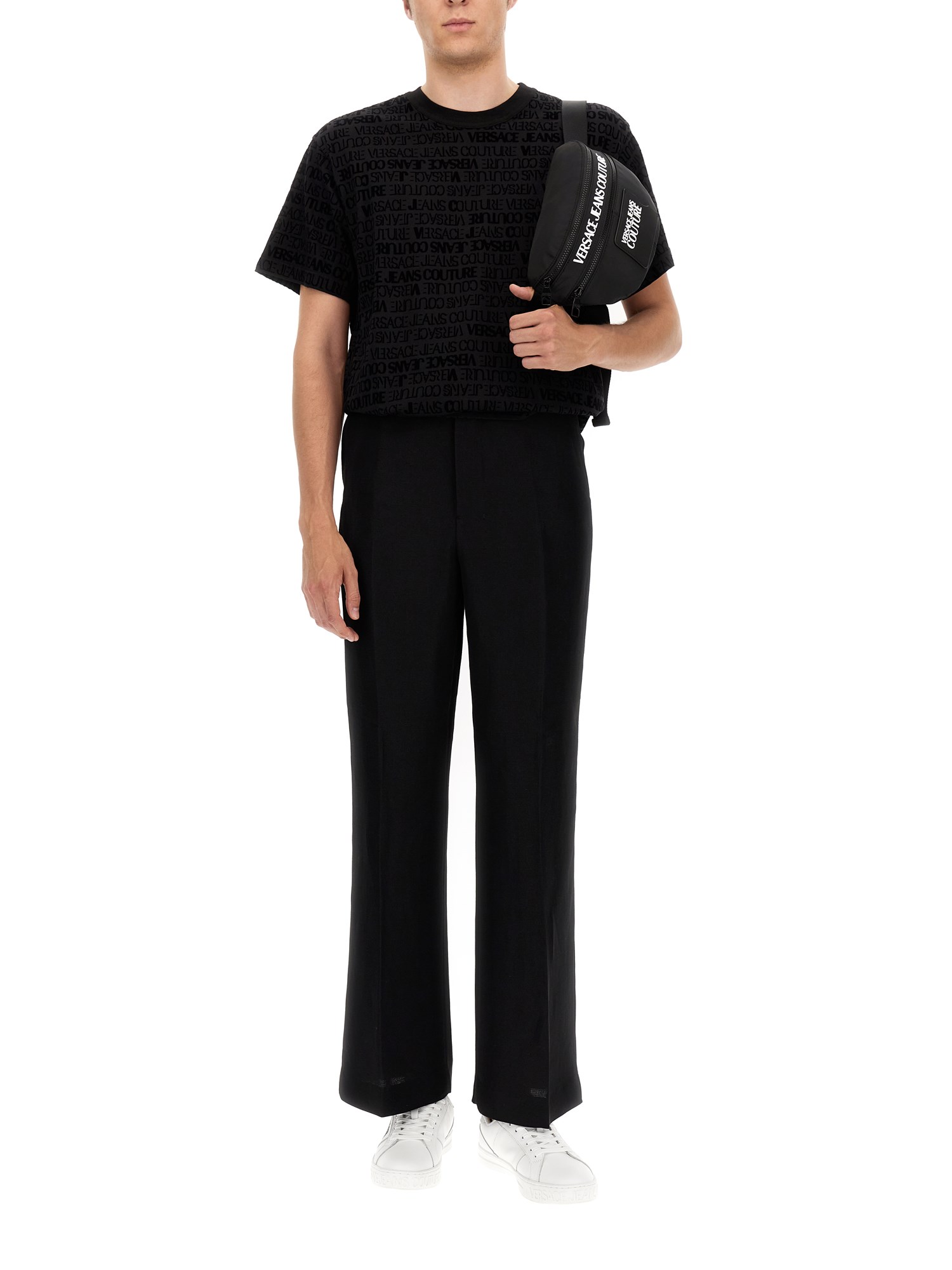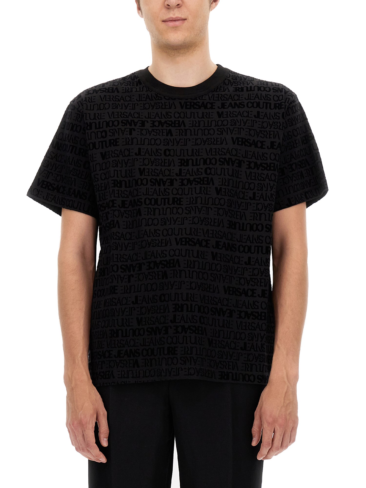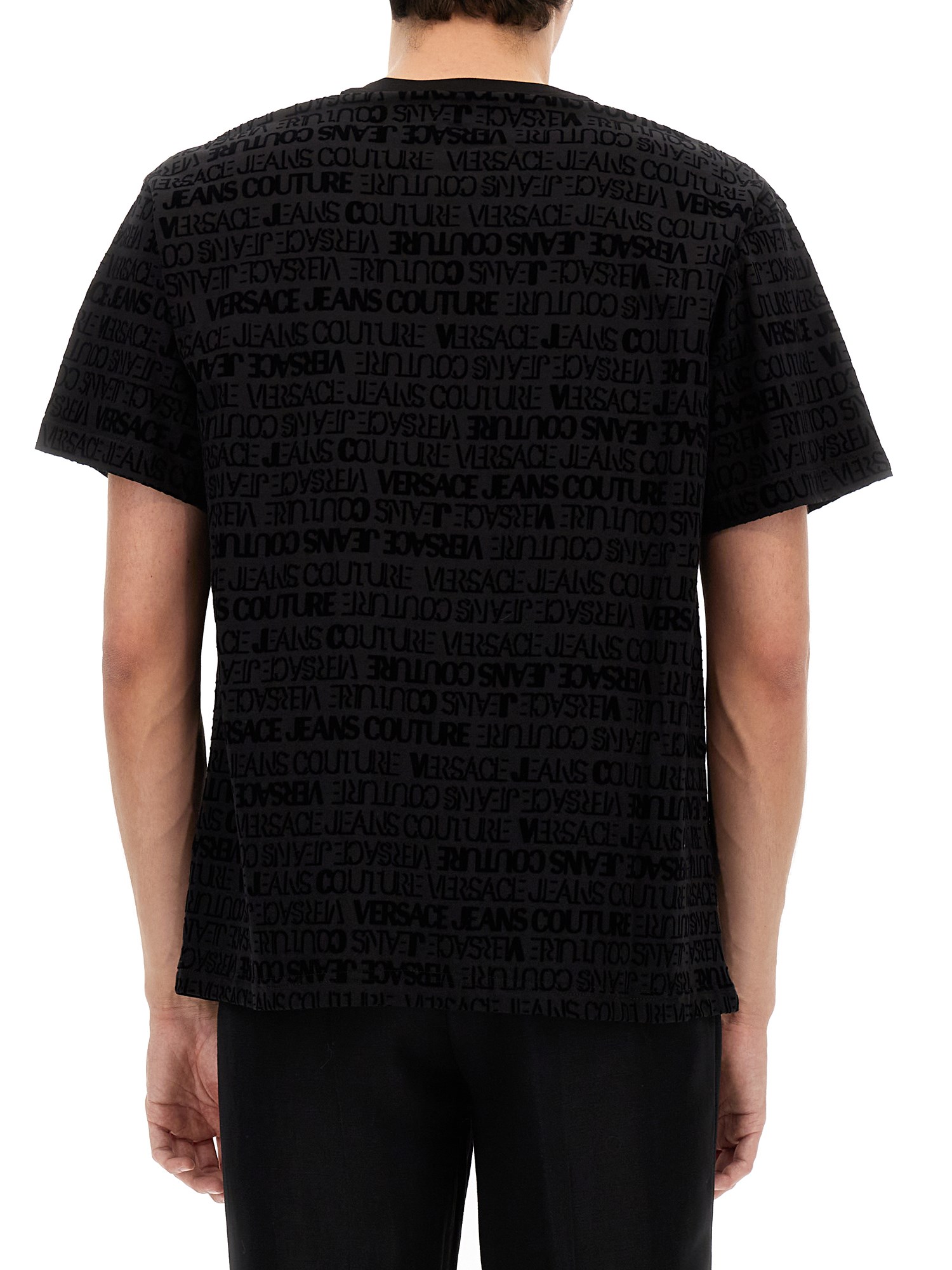 Questa T-shirt nera a girocollo di Versace Jeans Couture è realizzata in 100% cotone e ha una mano molto morbida. È un capo d'abbigliamento molto versatile che si può indossare con qualsiasi vestito, da un abito a un paio di jeans. È la maglietta perfetta da indossare per una giornata casual in ufficio o per uscire con gli amici.