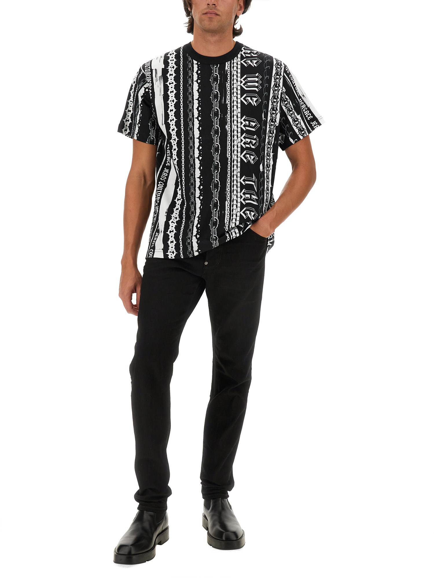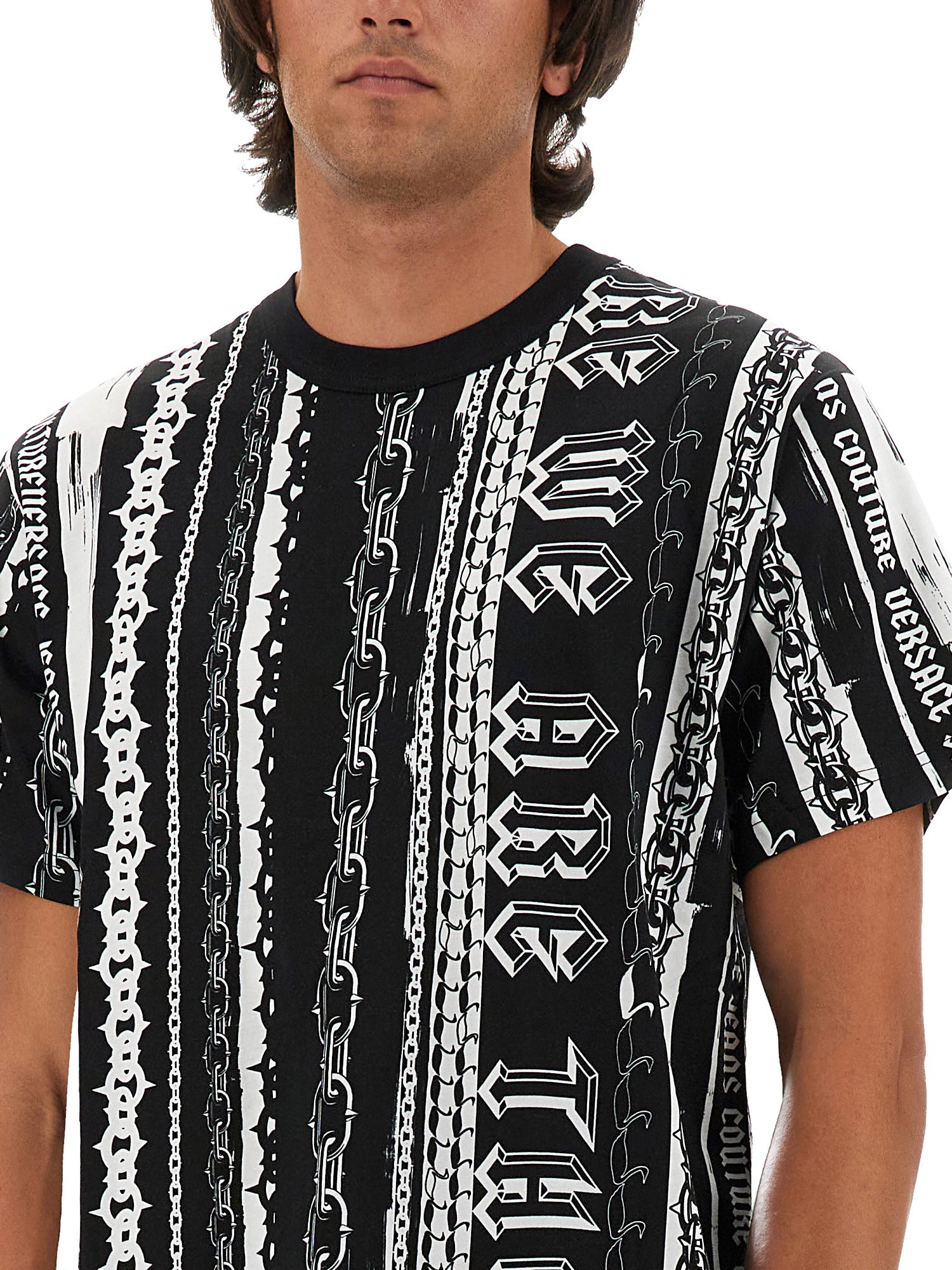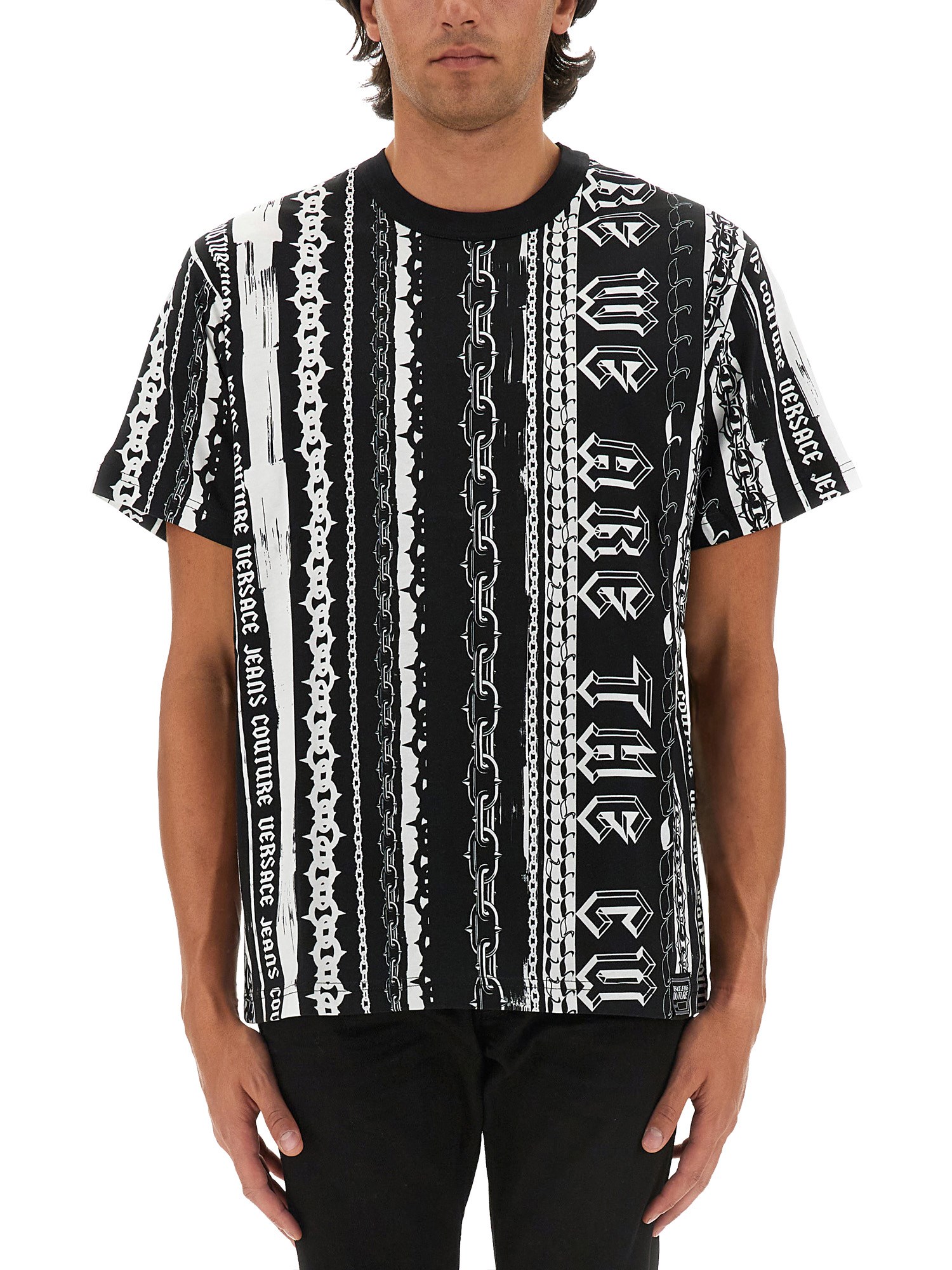 Questa T-shirt Couture di Versace Jeans presenta un sorprendente design con logo, che incarna il caratteristico mix di lusso e stile contemporaneo del marchio. Realizzata con materiali di alta qualità, offre comfort e durata, rendendola un'aggiunta essenziale a qualsiasi guardaroba alla moda. L'audace logo in evidenza ne esalta il fascino visivo, assicurando che questa T-shirt si distingua in qualsiasi ambiente casual o semi-formale.