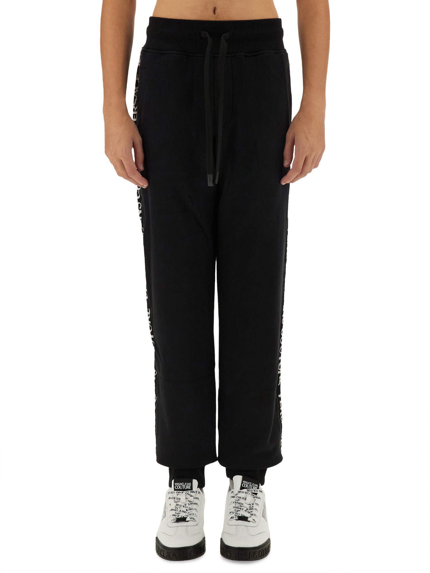 Provate il perfetto connubio tra stile e comfort con i pantaloni da jogging Versace Jeans Couture, caratterizzati da un logo distintivo. Realizzati con materiali di alta qualità, questi pantaloni offrono una vestibilità rilassata ideale sia per le uscite casual che per le attività sportive. L'iconico logo aggiunge un tocco di lusso, rendendoli un'aggiunta versatile a qualsiasi guardaroba. Elevate il vostro abbigliamento per il tempo libero con questi pantaloni da jogging alla moda che incarnano l'essenza del design contemporaneo.