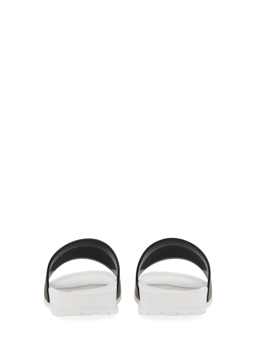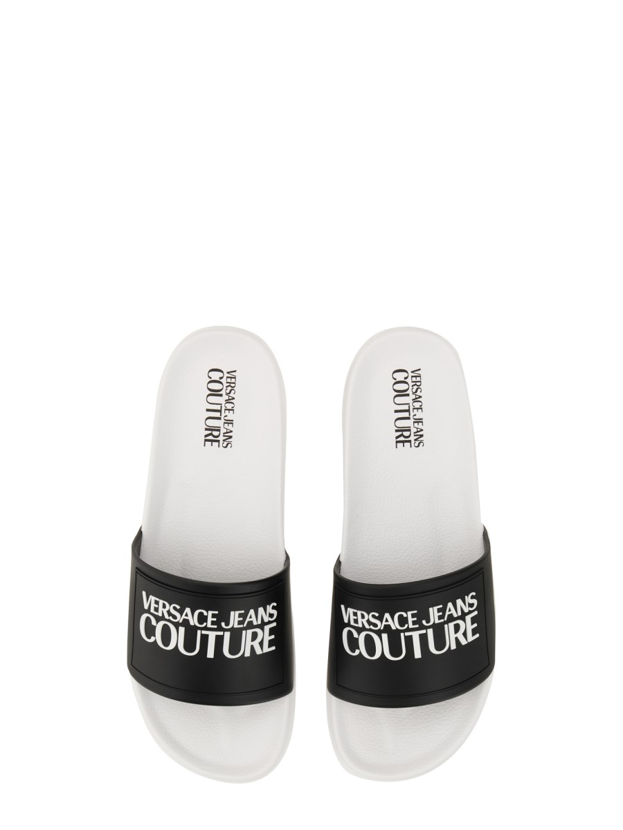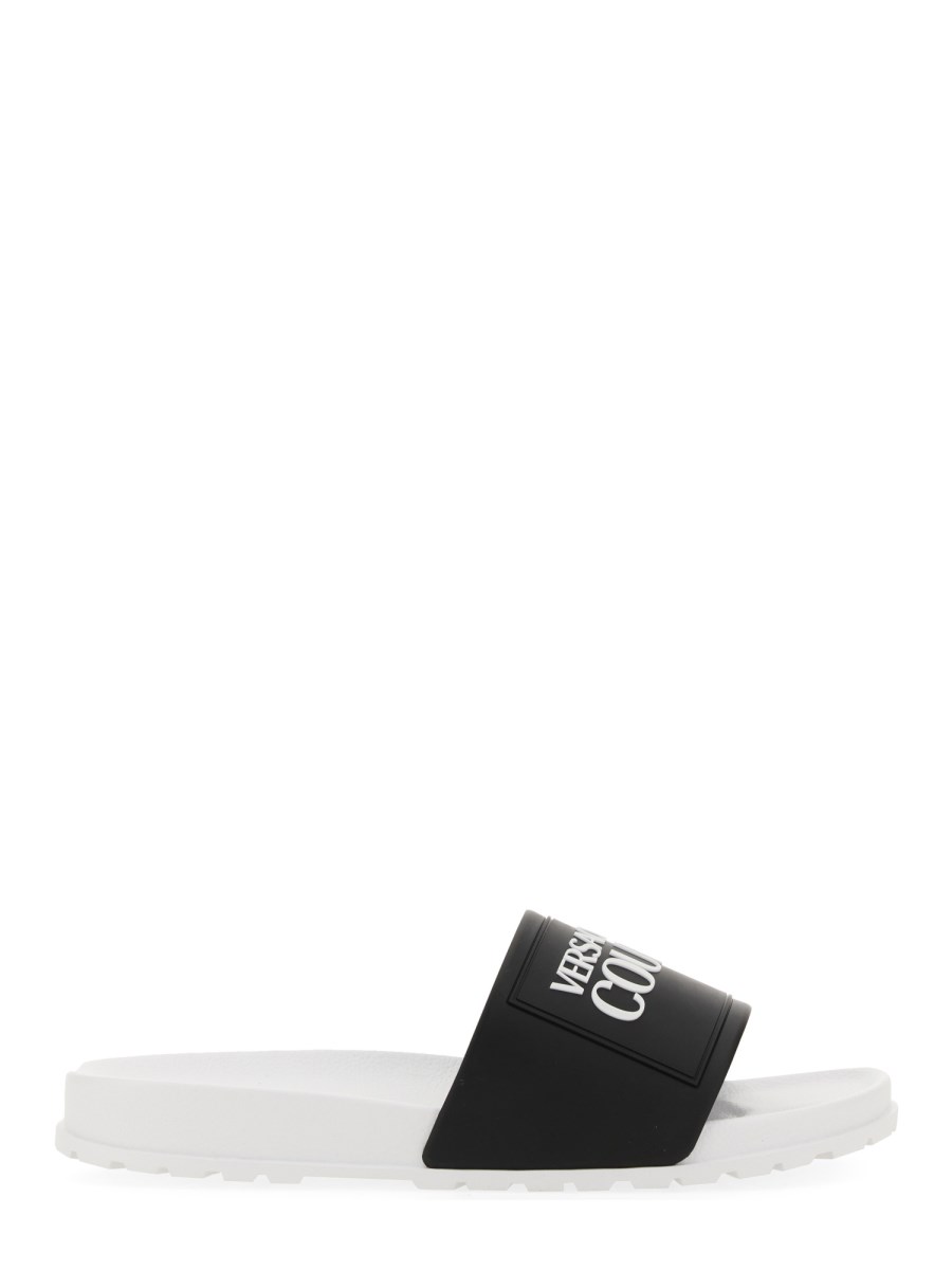 I sandali slide in gomma di Versace Jeans Couture sono uno stile accattivante con una tomaia in gomma rifinita con un logo sul davanti. I sandali slide in gomma sono perfetti per i mesi estivi e manterranno i vostri piedi protetti e freschi nella stagione calda. Fate un passo nella natura con questo sandalo in pelle morbido e resistente.