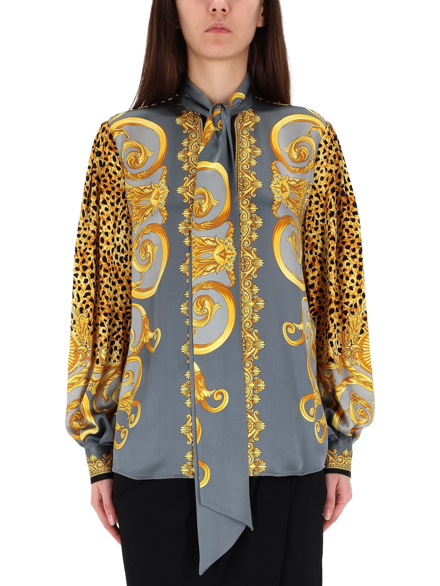 CAMICIA IN SETA CON NASTRO SUL COLLO