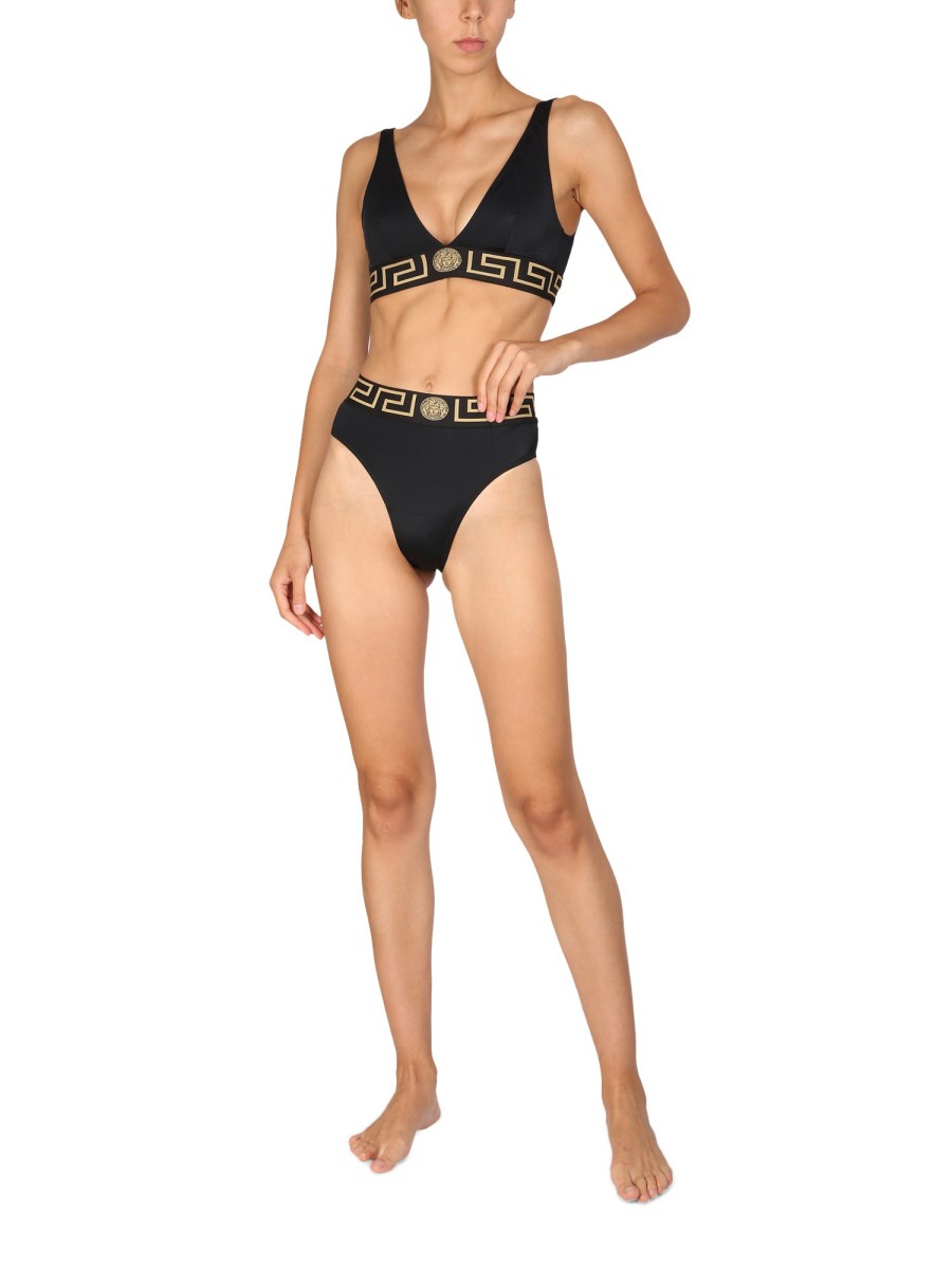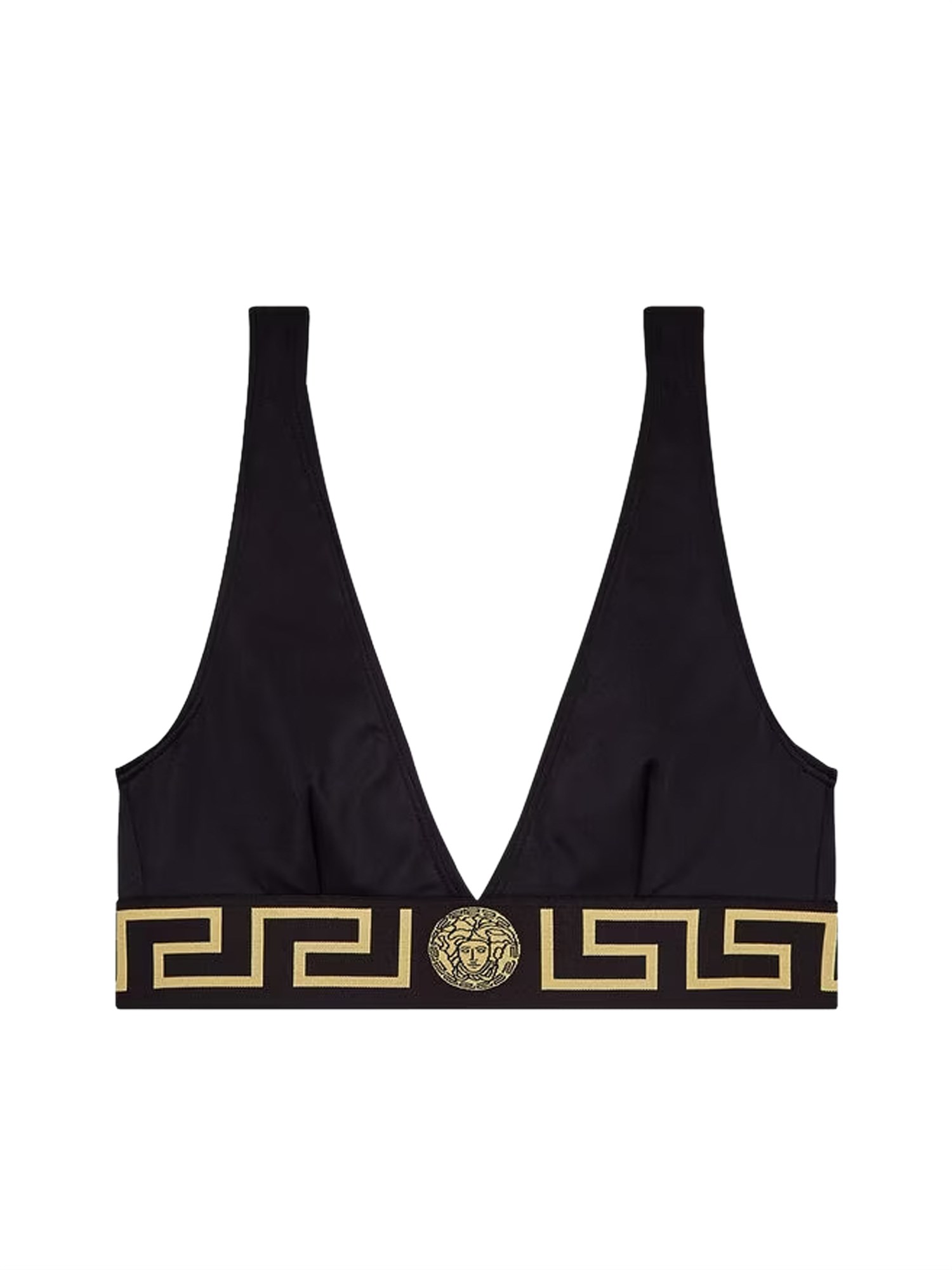 Vi piacerà lo stile a triangolo di questo costume da bagno intero di Versace. Con questo top bikini pronto per l'estate, potrete andare in spiaggia e mostrare la vostra pelle sexy e baciata dal sole. Realizzato al 100% in poliammide, il top a triangolo ha un tessuto elasticizzato in elastan e finiture nere. Il top a triangolo è perfetto per un look estivo baciato dal sole.
