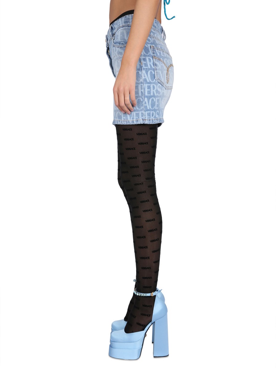 - CHIUSURA CON BOTTONE MEDUSA- PASSANTI IN VITA PER CINTURA- CINQUE TASCHE- 100% COTONE- LA MODELLA È ALTA 180 CM E INDOSSA LA TAGLIA 40 IT