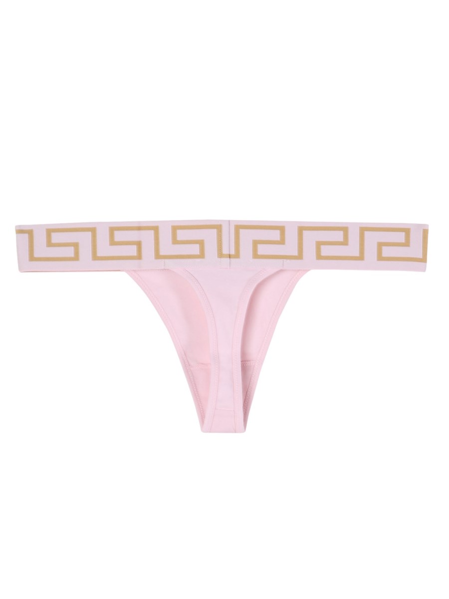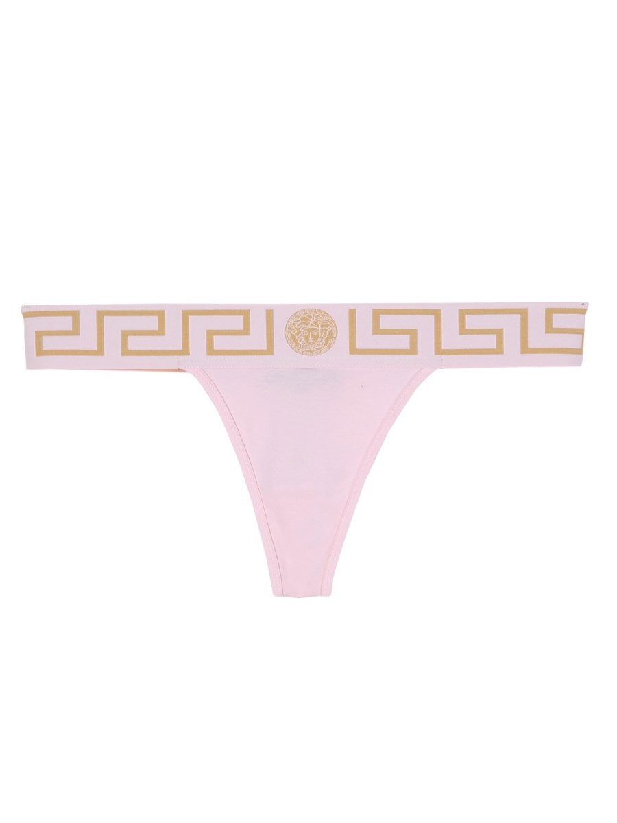 Queste comode, morbide e resistenti mutandine di Versace sono perfette per ogni occasione! Questo perizoma in misto cotone è realizzato in morbido elastico e presenta un elastico in vita con logo. Il perizoma si abbina perfettamente a tutte le mode estive. Sono perfetti per l'uso quotidiano e il materiale li rende molto confortevoli.