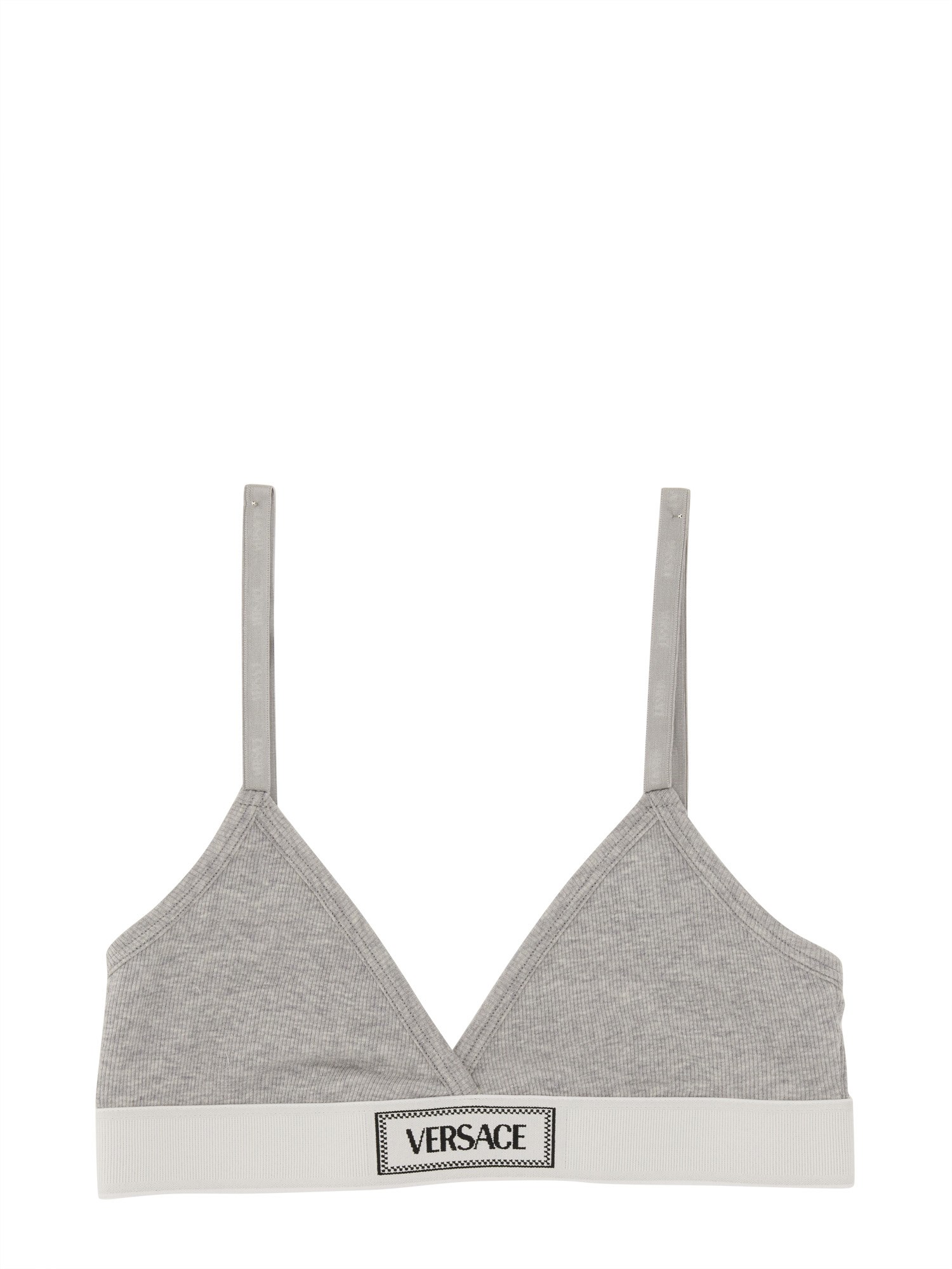 Questa bralette grigia di Versace è un'aggiunta elegante e confortevole alla vostra collezione di lingerie. L'iconico logo Versace aggiunge un tocco di lusso a questo capo versatile, rendendolo perfetto per l'abbigliamento quotidiano o per le occasioni speciali. Realizzata con materiali di alta qualità, questa bralette offre sostegno e stile, rendendola un must-have per ogni individuo alla moda.