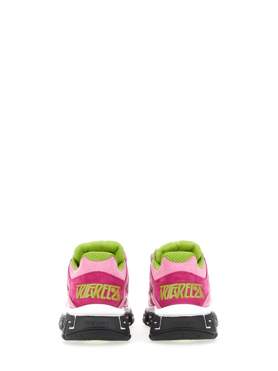La ricerca di scarpe da ginnastica comode e alla moda di Versace è finita! Queste eleganti e sportive sneakers piatte in pelle con lacci saranno le vostre nuove scarpe preferite. Con lacci piatti e tomaia in pelle, queste sneakers sono perfette per il clima più caldo. Sono perfette per chi vuole mantenere i piedi asciutti, ma non troppo caldi.