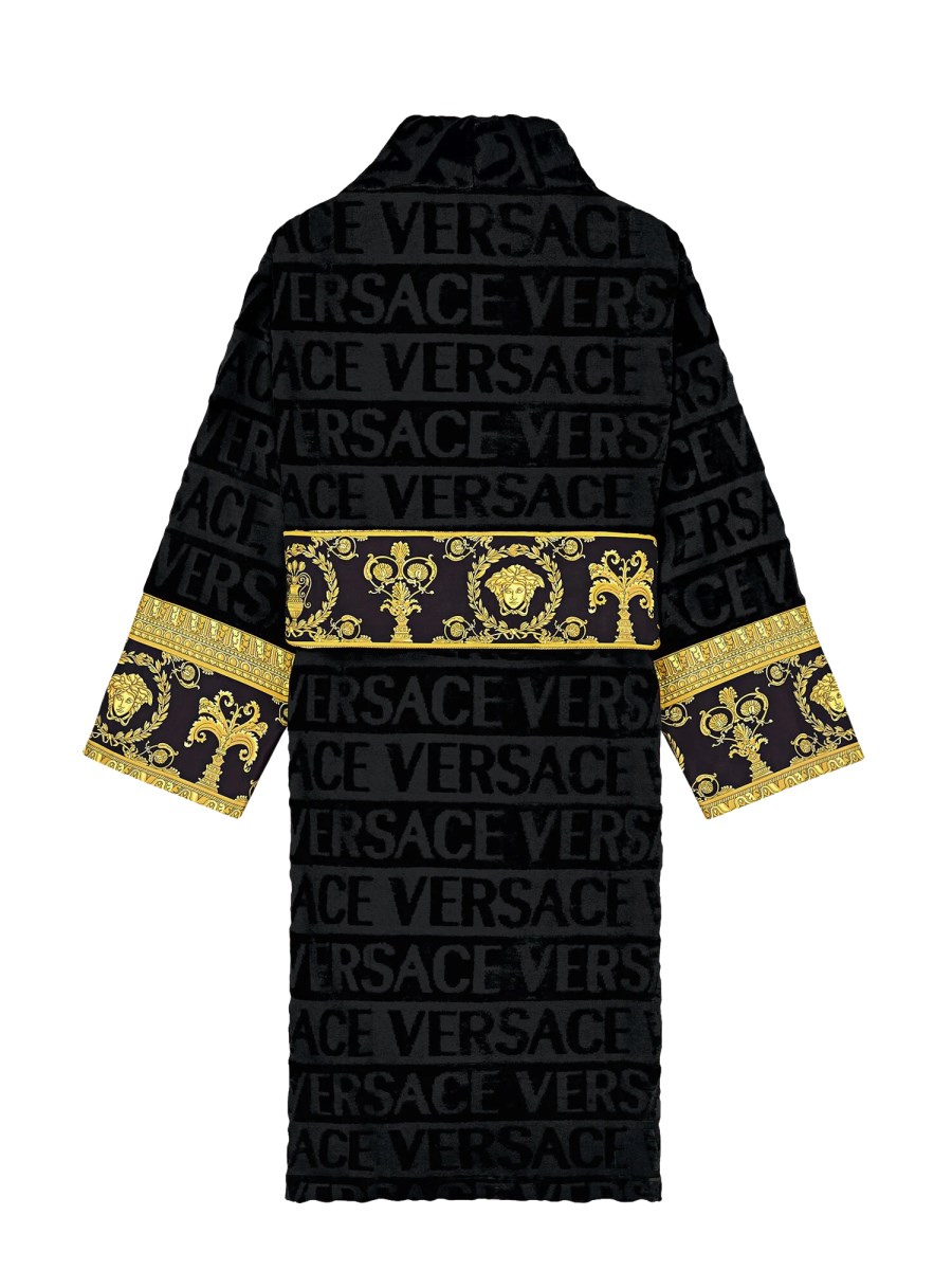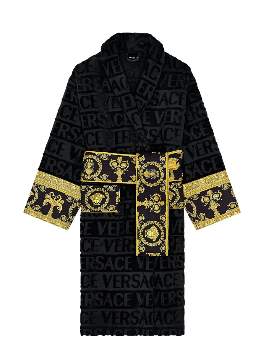 - COLLO SCIALLATO- MOTIVO CON TEXTURE LOGO- MANICHE E CINTURA CON STAMPA BAROCCO- TESSUTO ESTERNO: 100% COTONE- FINITURE: 100% COTONE - MADE IN ITALY