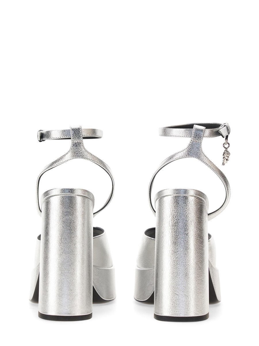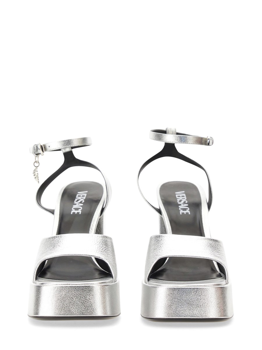 Questo bellissimo sandalo alla moda di Versace è caratterizzato da un attraente colore argento con finiture nere, che lo renderà un'aggiunta perfetta a qualsiasi outfit. È inoltre dotato di un cinturino regolabile che vi permetterà di trovare la calzata perfetta. Un pezzo di puro lusso che si aggiunge a qualsiasi guardaroba, questi sandali firmati sono un must-have per la prossima stagione.
