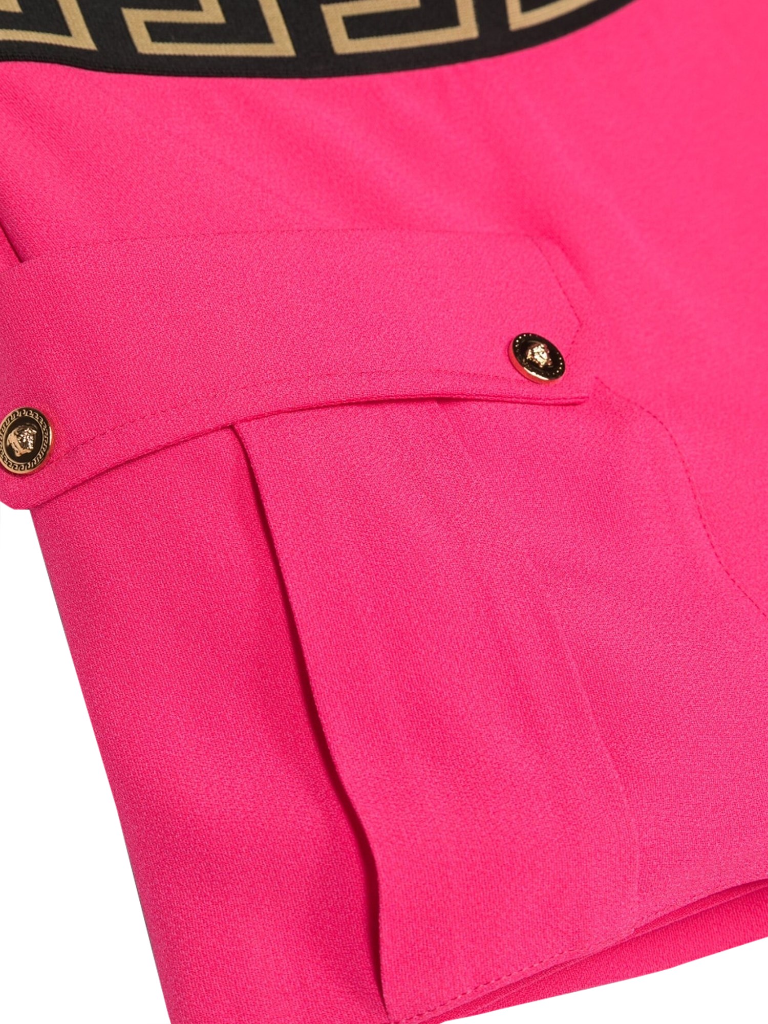 Questi pantaloncini di Versace sono perfetti per le giornate estive e sono comodi per i vostri piccoli. Questi pantaloncini morbidi e confortevoli sono realizzati in acetato di viscosa, una fibra morbida e resistente. L'elastico in vita è sottile ed elastico e presenta un'etichetta con il marchio. Questi pantaloncini sono perfetti per l'estate, per la scuola e per essere indossati tutti i giorni.