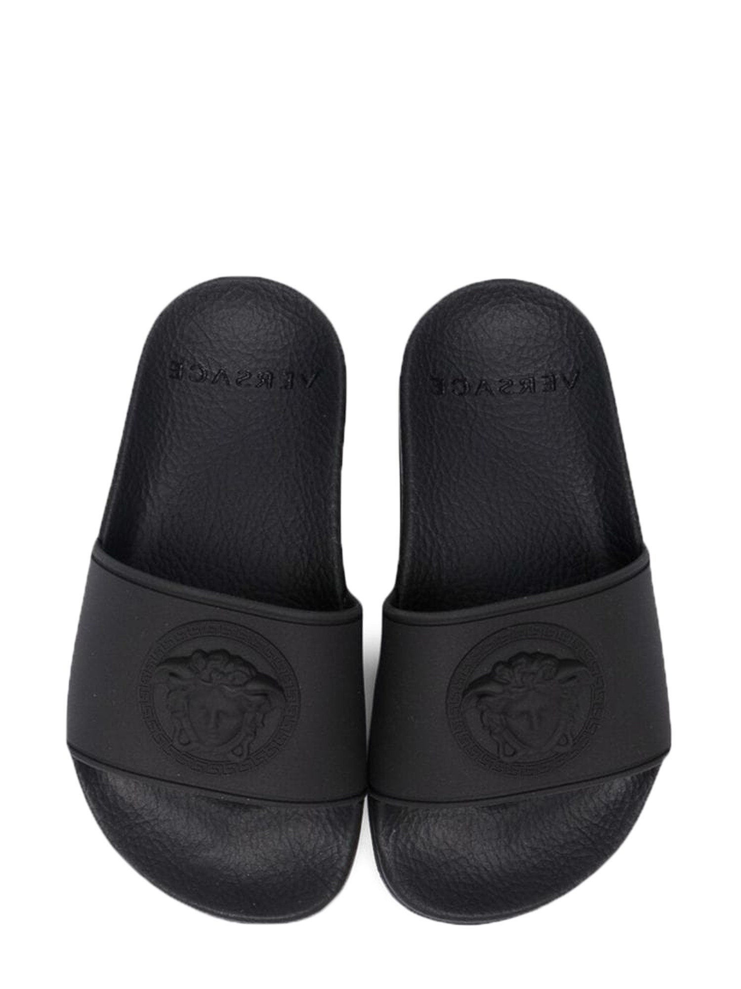 Queste scarpe in gomma nera di Versace sono l'accessorio perfetto per chi ama un look elegante e casual. Sono realizzate in materiale di gomma liscia e sono disponibili in diversi colori. Sono un'ottima scarpa per la sabbia e sono perfette per essere indossate ai piedi per giocare sulla sabbia.