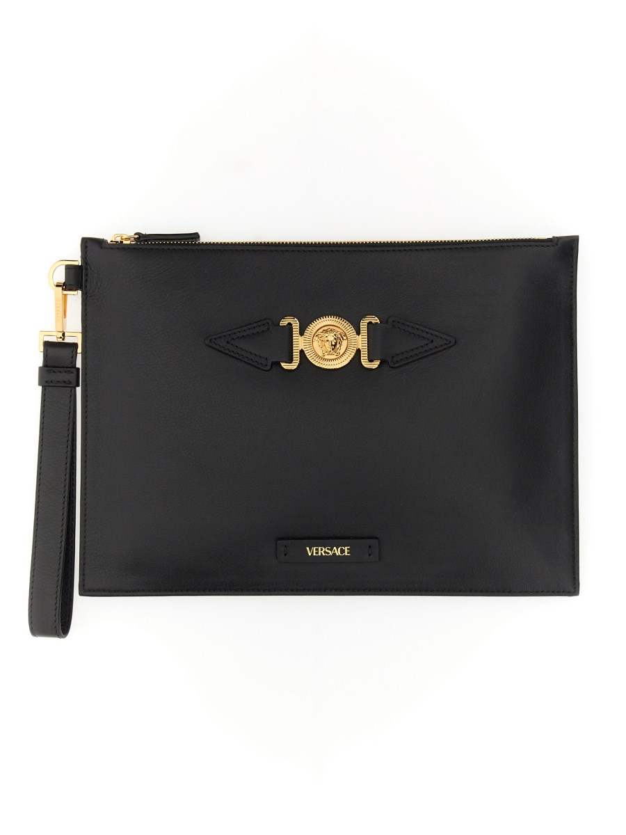 Questo borsello di Versace ha le dimensioni perfette per portare con sé gli oggetti essenziali ed è il compagno di viaggio per eccellenza. Questo borsellino è realizzato in pelle di vitello liscia e morbida di qualità. È un accessorio indispensabile per tutti coloro che amano essere organizzati, dai professionisti agli studenti.