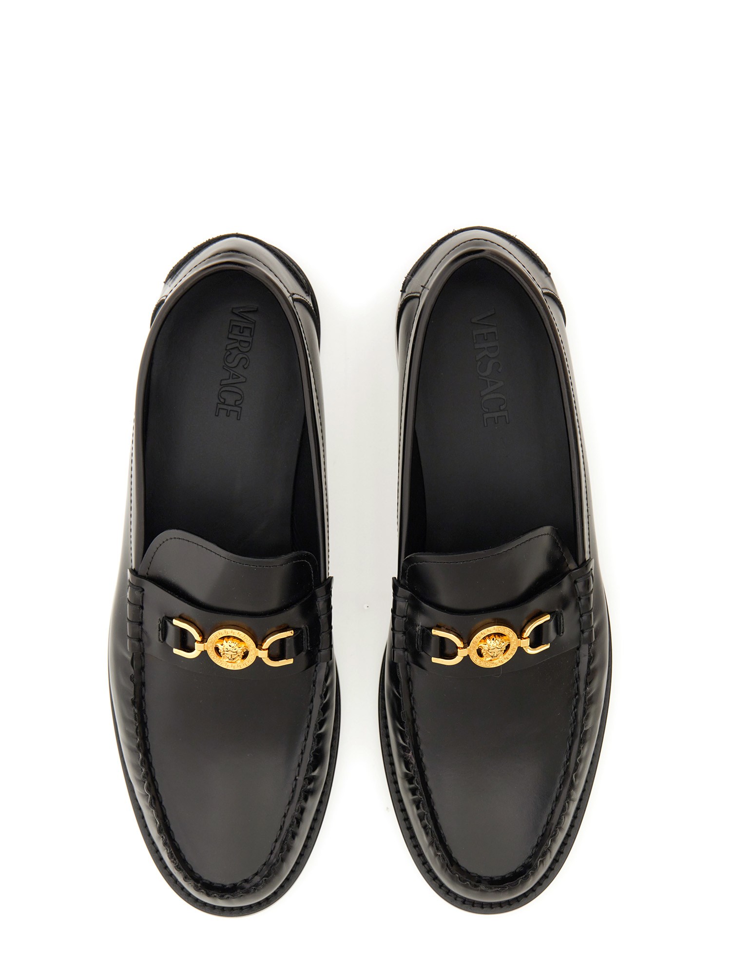 Questi mocassini Versace emanano lusso ed eleganza. La parte anteriore dei mocassini presenta uno splendido logo Medusa, che aggiunge un tocco di fascino iconico al vostro abbigliamento. Realizzati all'insegna del comfort, questi mocassini sono dotati di una soletta ammortizzata che offre un sostegno eccezionale e garantisce un comfort che dura tutto il giorno.