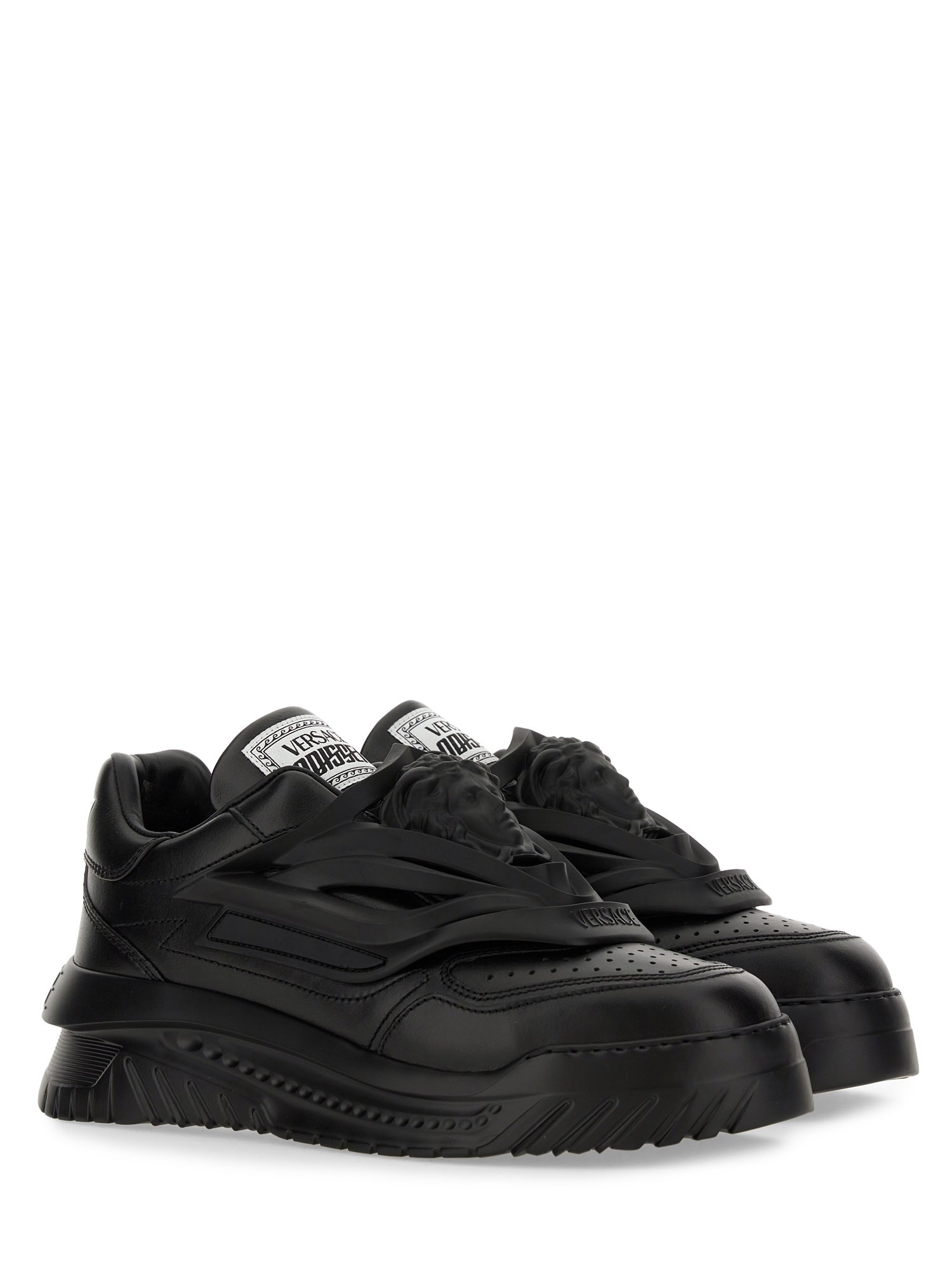 Una scarpa Versace ideale per chi è sempre in movimento. Queste scarpe sono realizzate in morbida pelle, che assicura il massimo comfort. Queste scarpe hanno un classico stile stringato e senza chiusura, che le rende perfette per una giornata in città. La scarpa presenta una medusa tridimensionale che mette in mostra il vostro lussuoso armadio.