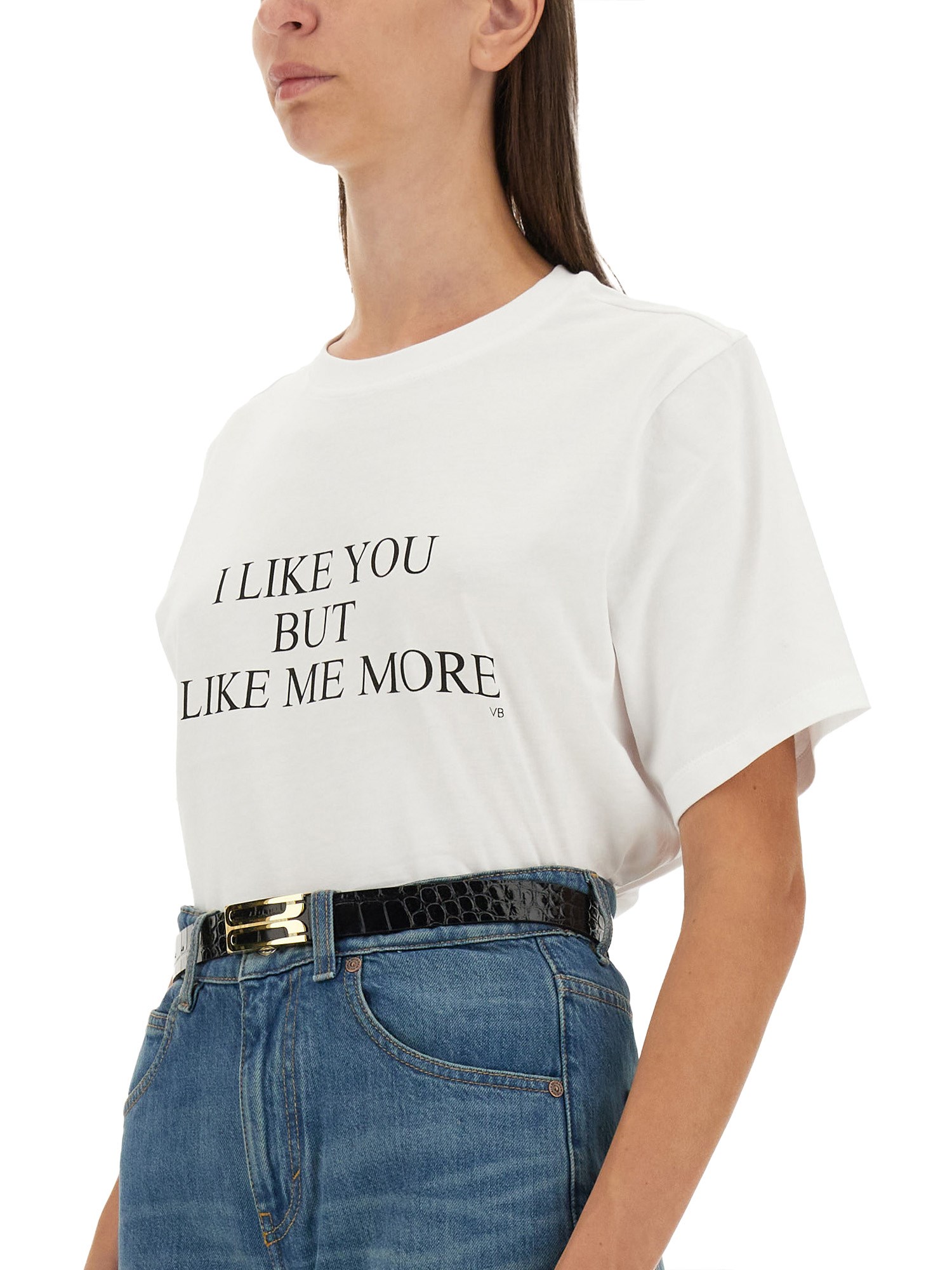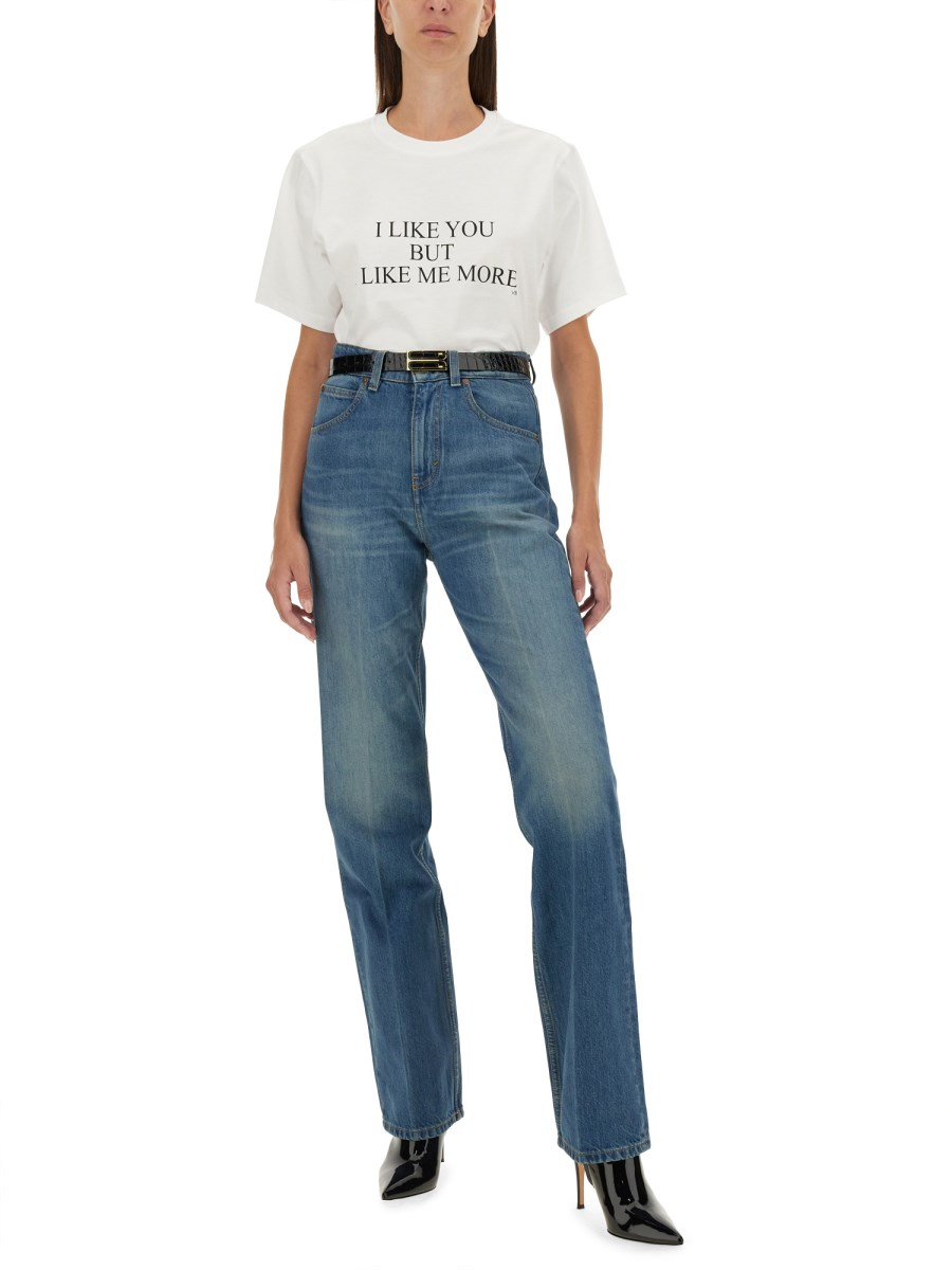 Un look disinvolto con questa T-shirt con stampa di Victoria Beckham. Caratterizzata da un classico girocollo, maniche corte e orlo dritto, questa T-shirt Slogan è perfetta per le giornate fuori casa. Con il messaggio sfacciato "I LIKE YOU BUT I LIKE ME MORE" scritto sul davanti, farete sicuramente colpo ovunque andiate.