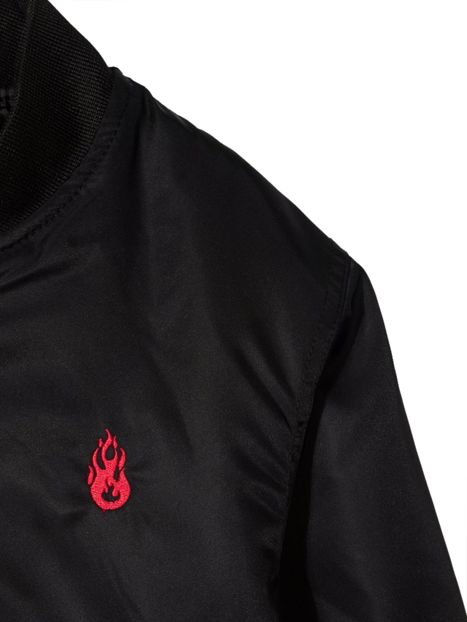 BLACK PANTS WITH RED EMBROIDERED FLAMES