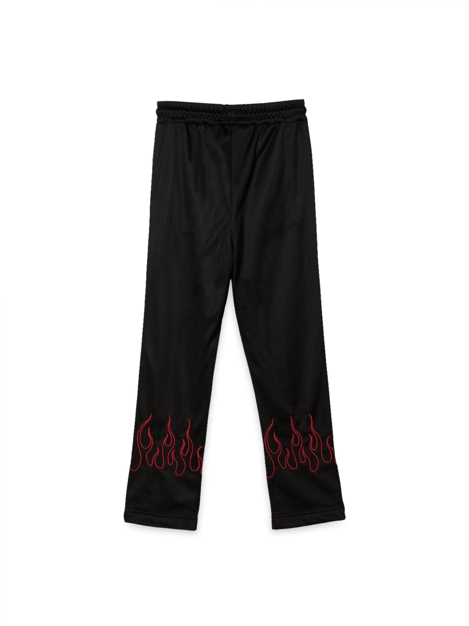 BLACK PANTS WITH RED EMBROIDERED FLAMES
