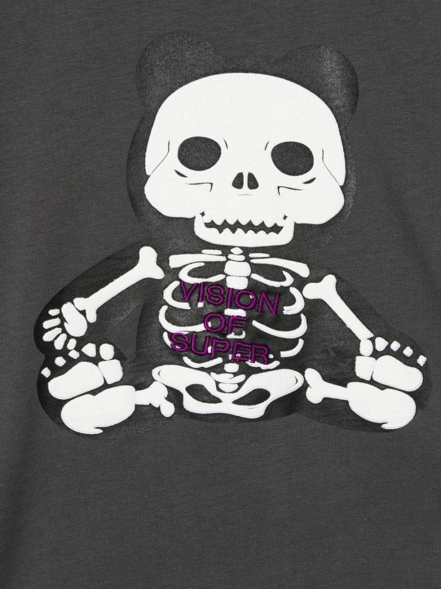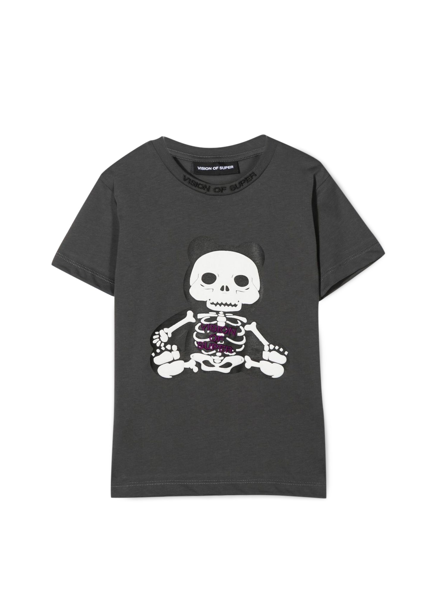 BLACK TSHIRT EMBROIDERED FUCSIA FLAME