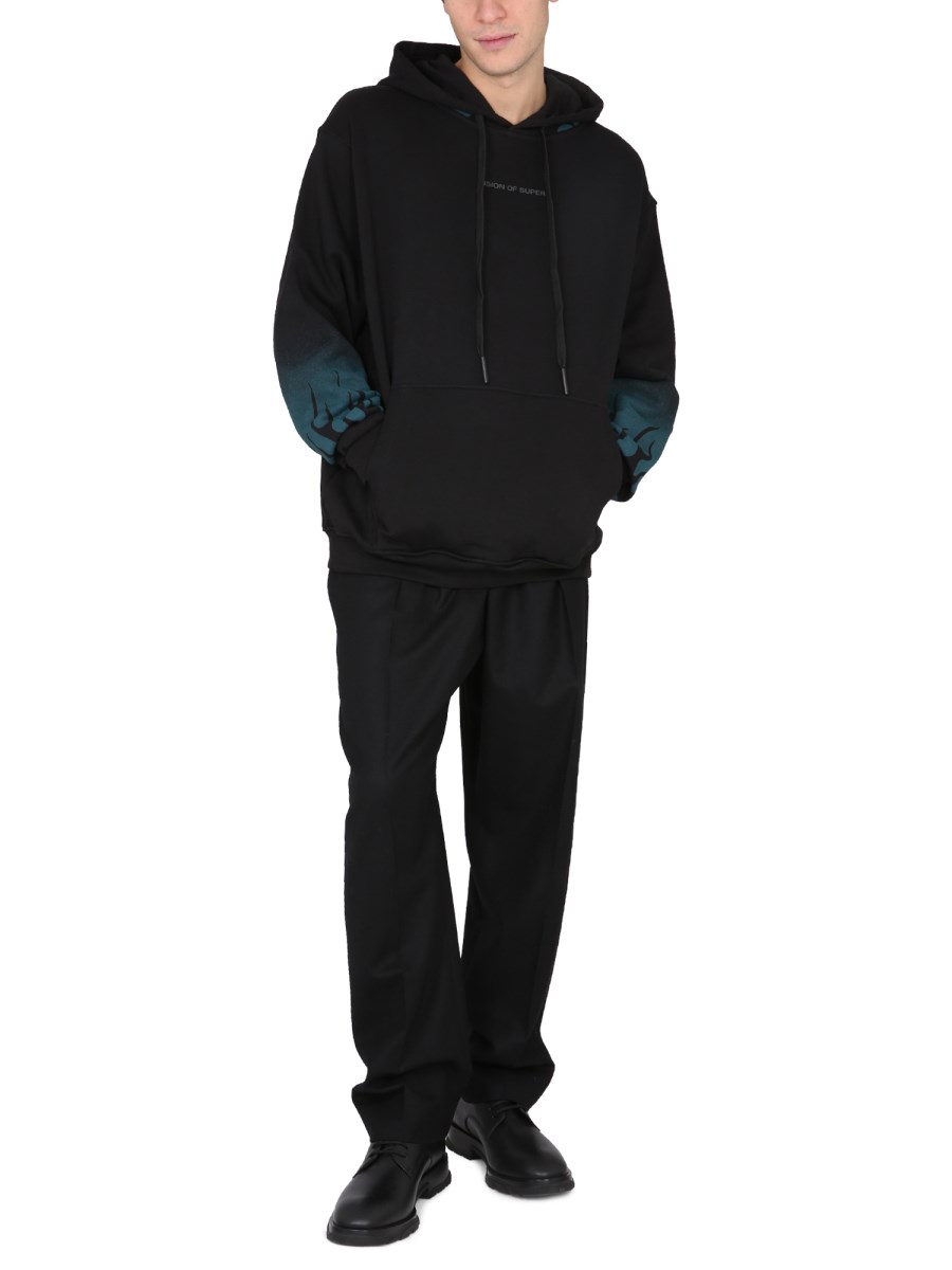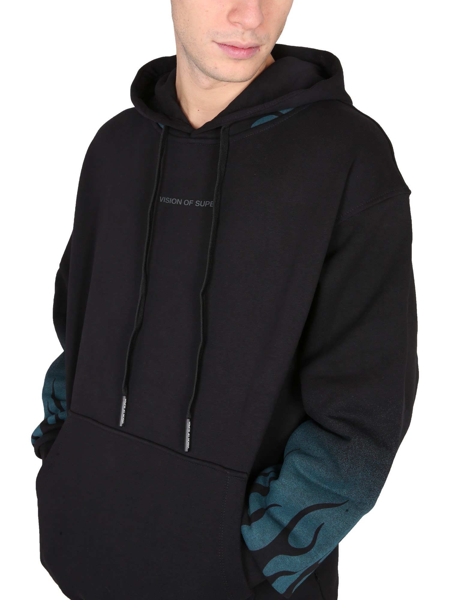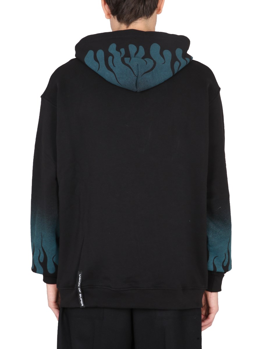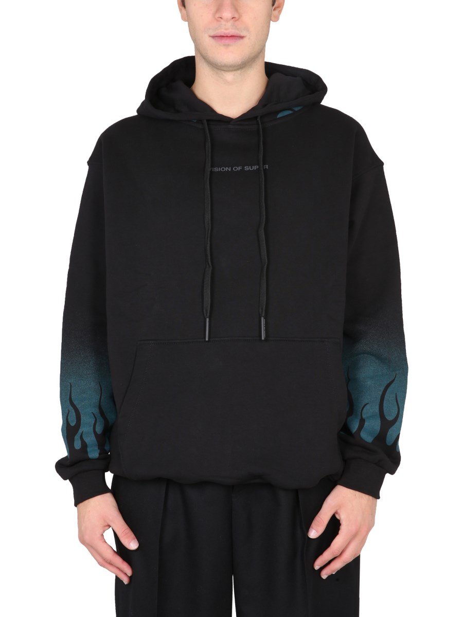 - MOTIVO FLAMES STAMPATO SU MANICHE E CAPPUCCIO
