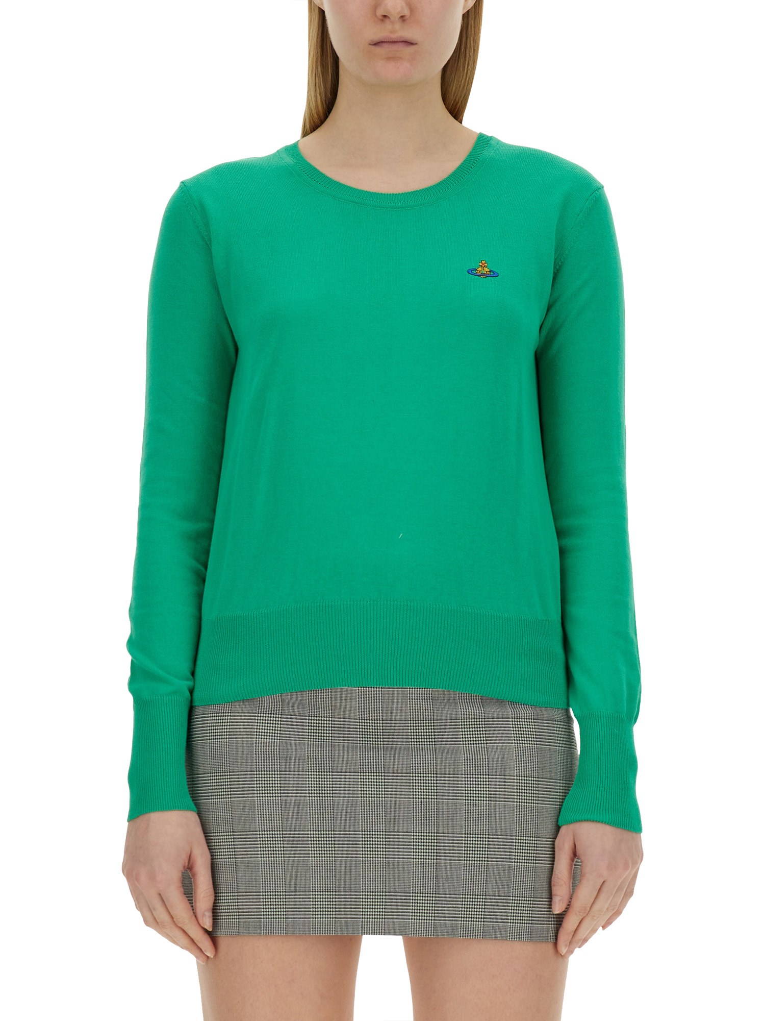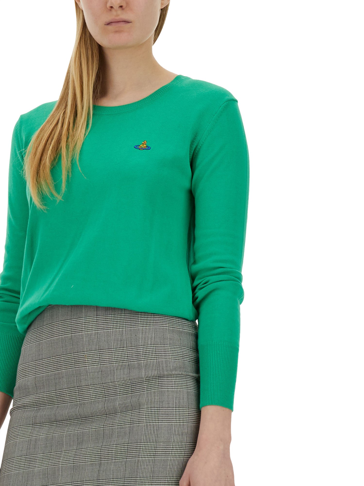 Questa T-shirt verde a manica intera a girocollo di Vivienne Westwood presenta un elegante logo frontale che la rende un'aggiunta versatile e di tendenza al vostro guardaroba. Realizzata con materiali di alta qualità, questa T-shirt offre comfort e resistenza, perfetta per essere indossata ogni giorno. Il design classico e il colore vivace la rendono facile da abbinare a jeans, pantaloncini o persino a una gonna per un look casual ma alla moda.