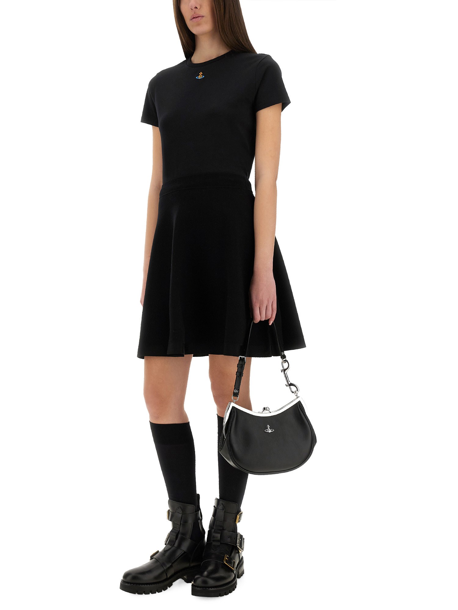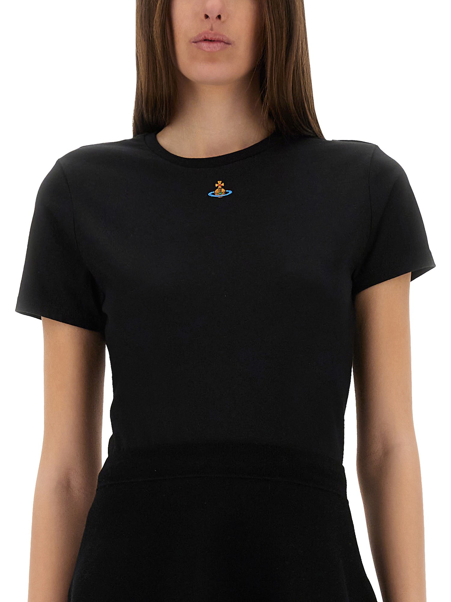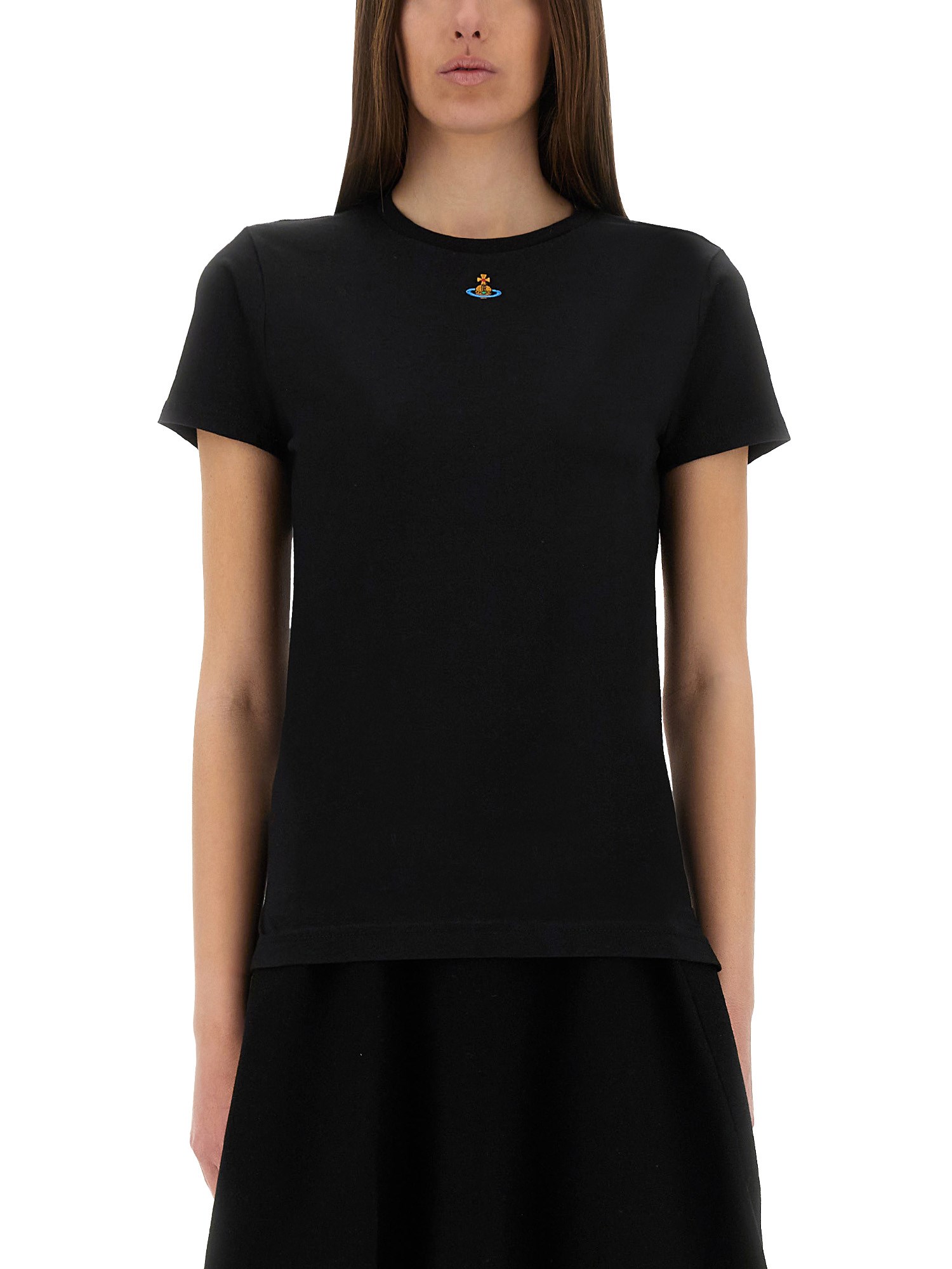 Questa T-shirt di Vivienne Westwood è incredibilmente morbida e traspirante, per un comfort che dura tutto il giorno. Il design a girocollo offre una vestibilità versatile e adatta a tutti i tipi di corpo. Con la sua intramontabile tonalità nera, questa T-shirt è un capo versatile che può essere abbinato a qualsiasi occasione. Che si tratti di una giornata informale o di una serata in città, questa maglietta è perfetta. Il colore nero è perfetto anche per la stratificazione, rendendola un capo base del vostro guardaroba per tutto l'anno.