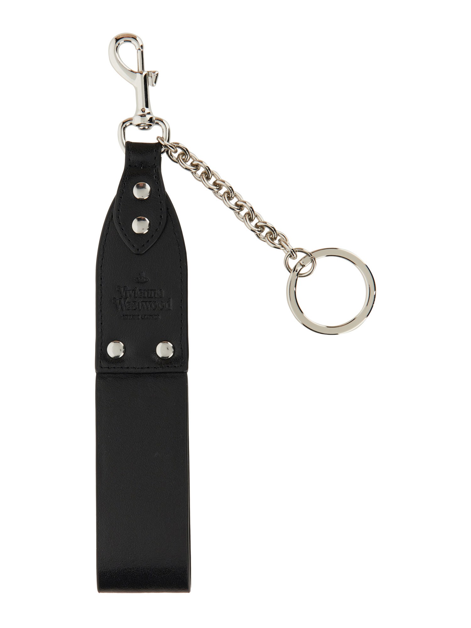 Questo portachiavi della maison Vivienne Westwood è realizzato al 100% in vera pelle, che lo rende resistente ed elegante. È dotato di un classico distintivo in pelle con una placca metallica a forma di sfera, un ciondolo ad anello e una chiusura a moschettone; gli accessori metallici con finitura argentata completano il look.