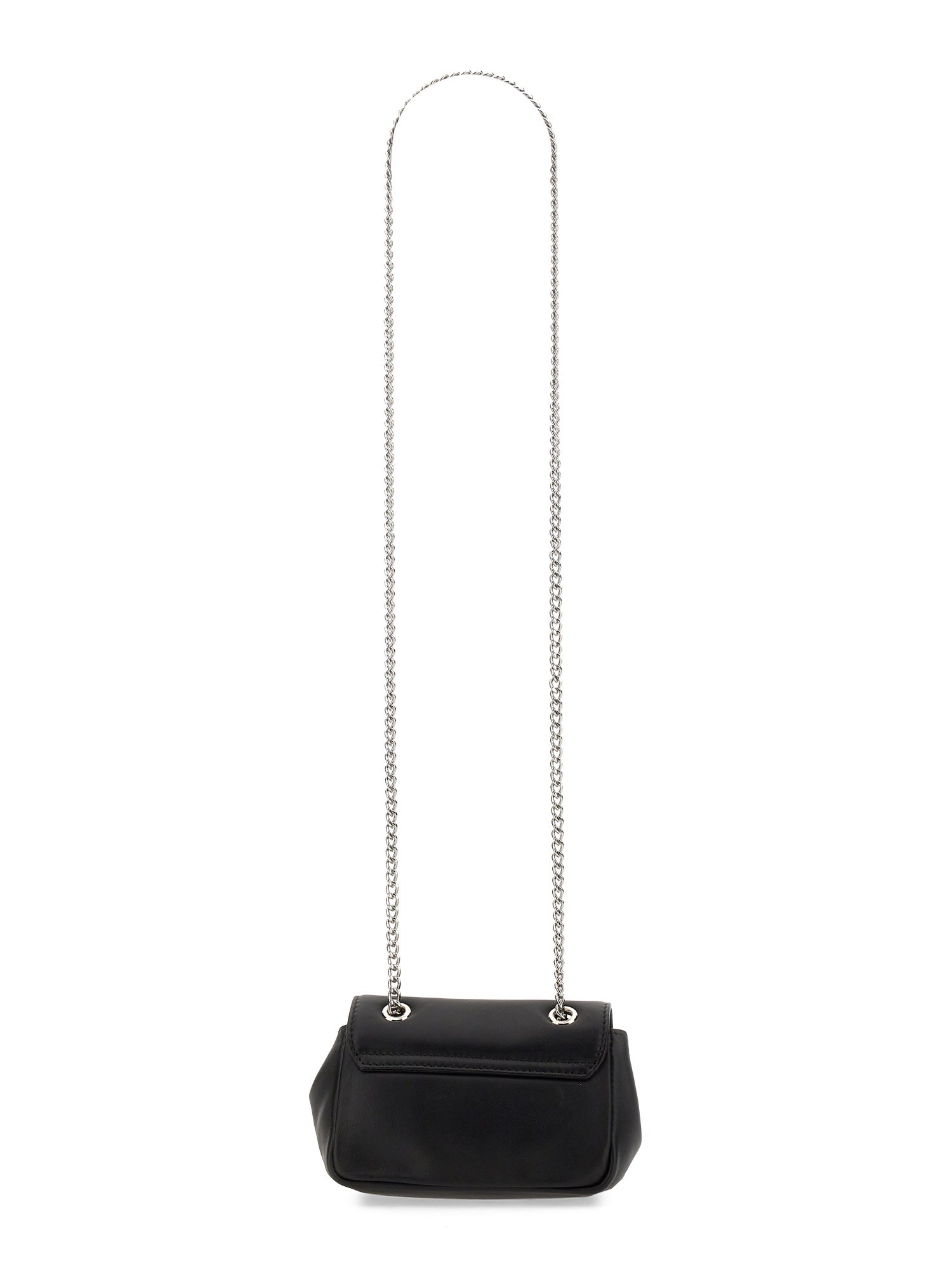 La borsa piccola con patta e chiusura magnetica con catena di Vivienne Westwood è l'accessorio perfetto. Questa borsa è realizzata in un materiale leggero che la rende facile da trasportare. È dotata di una piccola catena che ne facilita l'uso. Ha una tracolla regolabile a catena in metallo con finitura argentata.