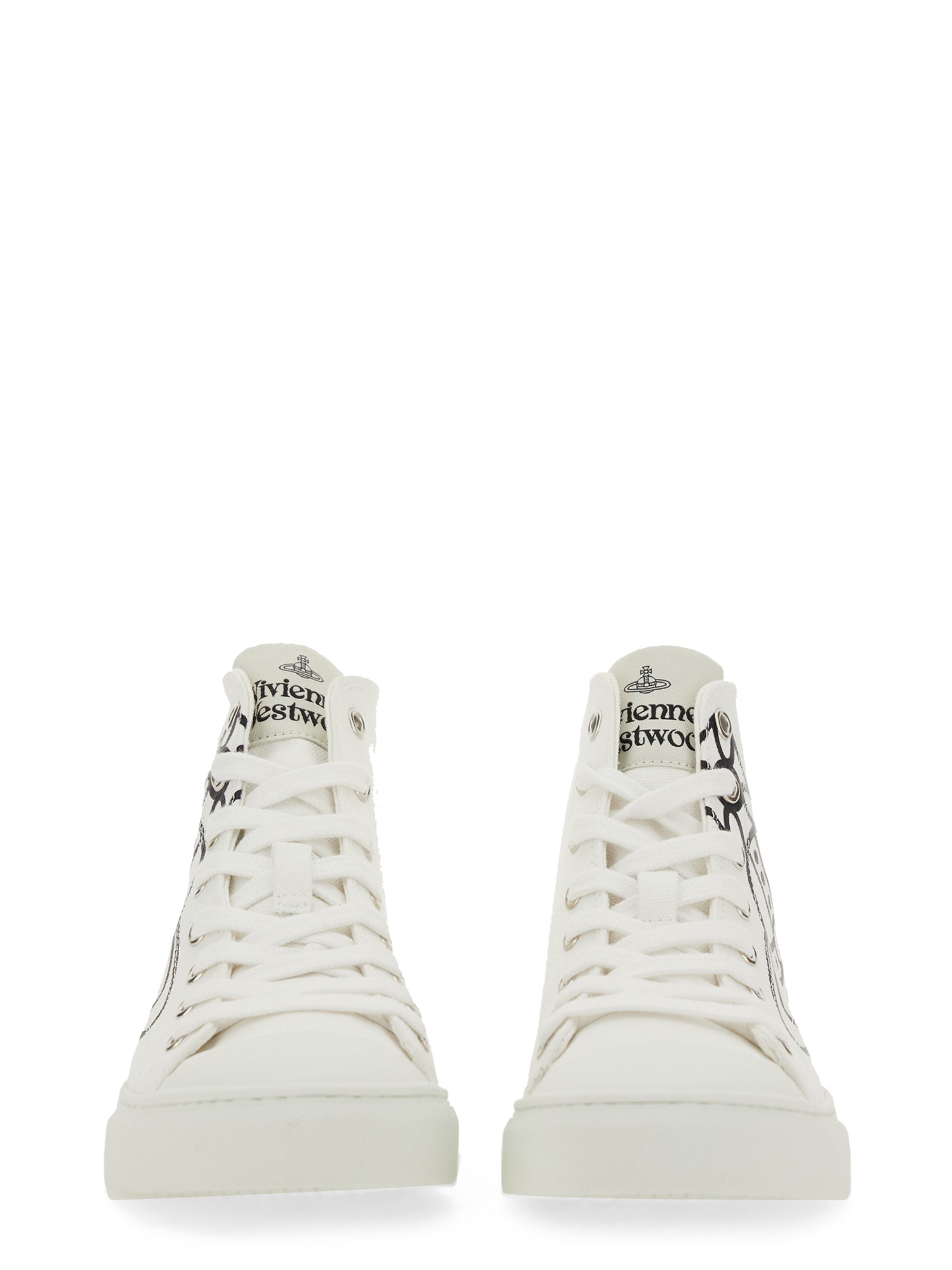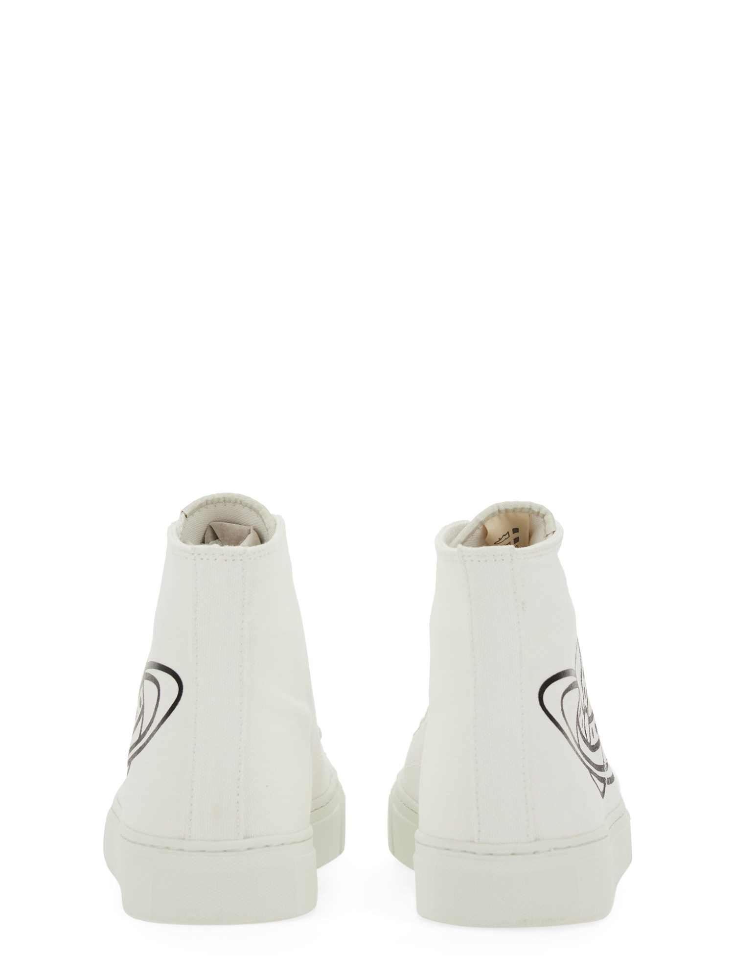 Queste sneakers di Vivienne Westwood sono un'aggiunta indispensabile alla vostra collezione di calzature. Realizzate in cotone di prima qualità, queste sneakers offrono una sensazione di traspirabilità e leggerezza, mantenendo i piedi freschi e comodi per tutto il giorno. Il classico colore bianco aggiunge un tocco di eleganza e versatilità, rendendo queste sneakers adatte a diverse occasioni, dalle uscite casual ai weekend.