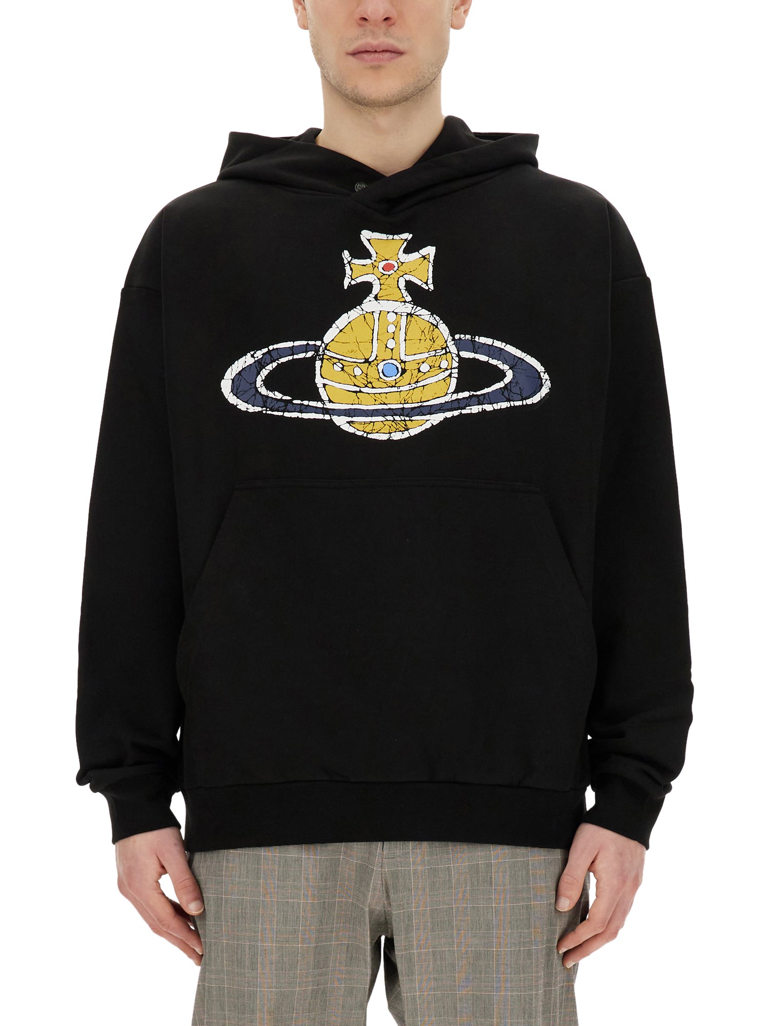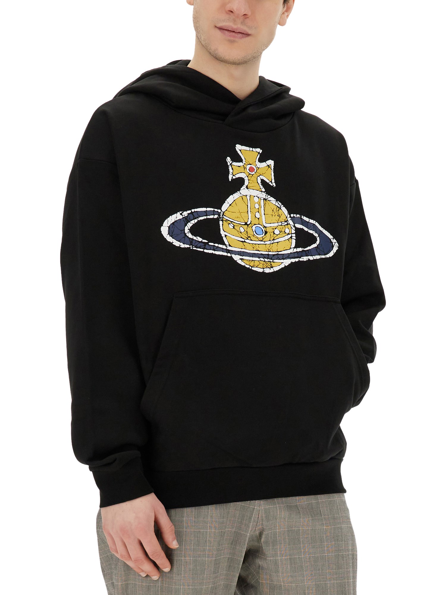Questa felpa di Vivienne Westwood è l'aggiunta perfetta al vostro guardaroba casual e offre stile e comfort. Realizzata con materiali di alta qualità, offre il massimo comfort per essere indossata tutto il giorno. Il cappuccio con coulisse aggiunge un tocco di stile urbano e permette di regolare la vestibilità a proprio piacimento. Che preferiate una vestibilità ampia o aderente, questa felpa vi soddisfa.