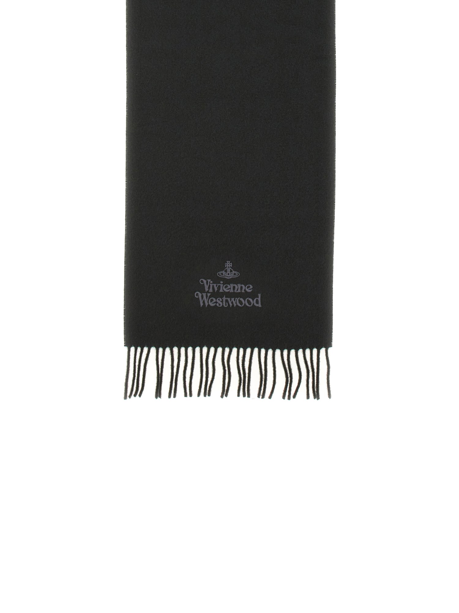 Questa sciarpa nera di Vivienne Westwood è realizzata in morbida lana e presenta un orlo a frange. Questo articolo è un must-have per l'inverno e può essere abbinato a qualsiasi cosa, dal vostro abito preferito a un maglione accogliente. Lo stile semplice è ideale per un outfit semplice e accogliente.