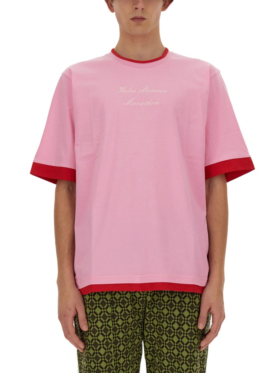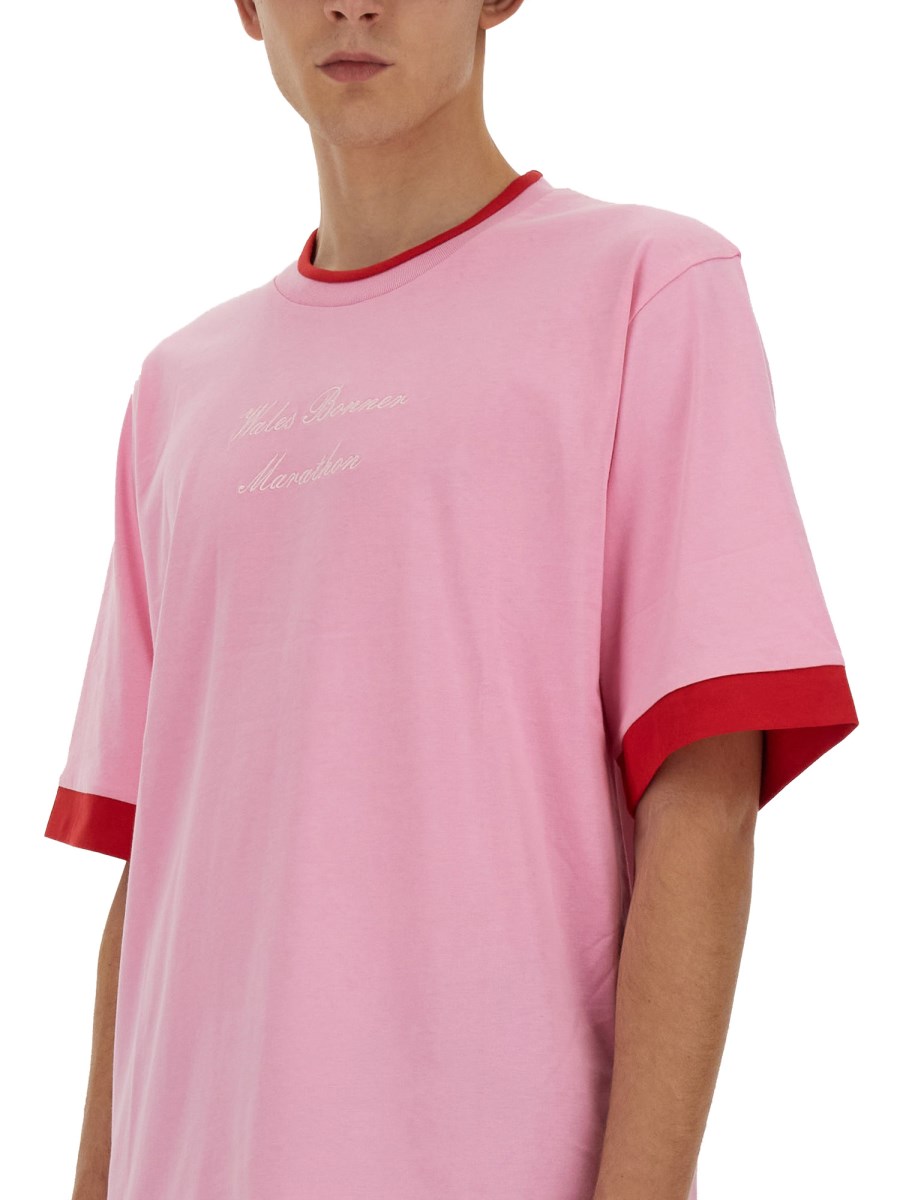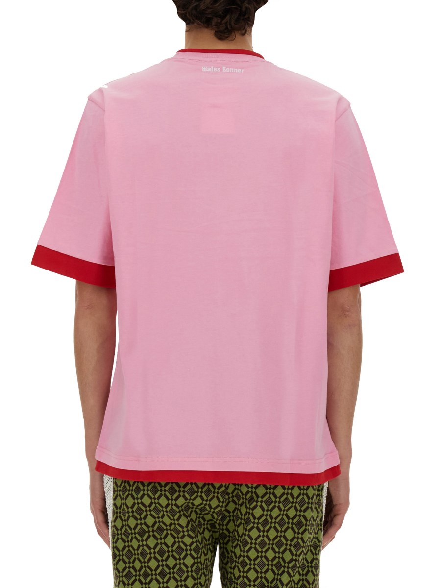 Vi presentiamo la T-shirt in cotone rosa di Wales Bonner! Realizzata in morbido cotone di alta qualità, questa T-shirt è perfetta per essere indossata tutti i giorni. L'allegro bordo rosso aggiunge un tocco divertente e stravagante al vostro abbigliamento, rendendola un ottimo spunto di conversazione. Sia che siate a casa o in giro, questa T-shirt è un must per tutti coloro che amano l'abbigliamento comodo e alla moda.