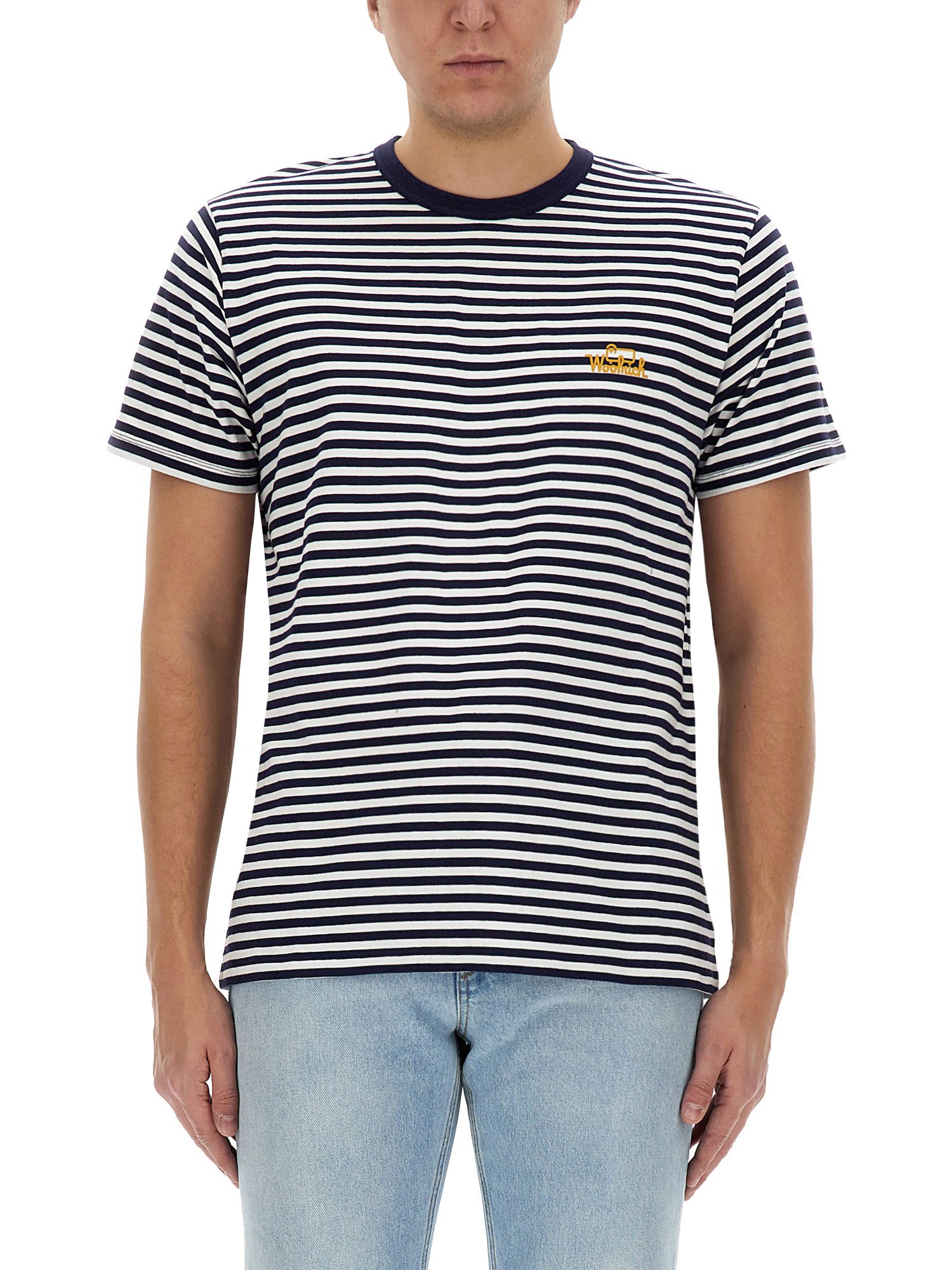 Questa T-shirt di Woolrich offre un comfort imbattibile e uno stile senza tempo. Realizzata con un tessuto di cotone di prima qualità, è incredibilmente morbida sulla pelle e perfetta per essere indossata tutto il giorno. Il classico design a girocollo aggiunge un tocco di raffinatezza al vostro look, mentre le vivaci righe conferiscono alla T-shirt un fascino trendy e alla moda.
