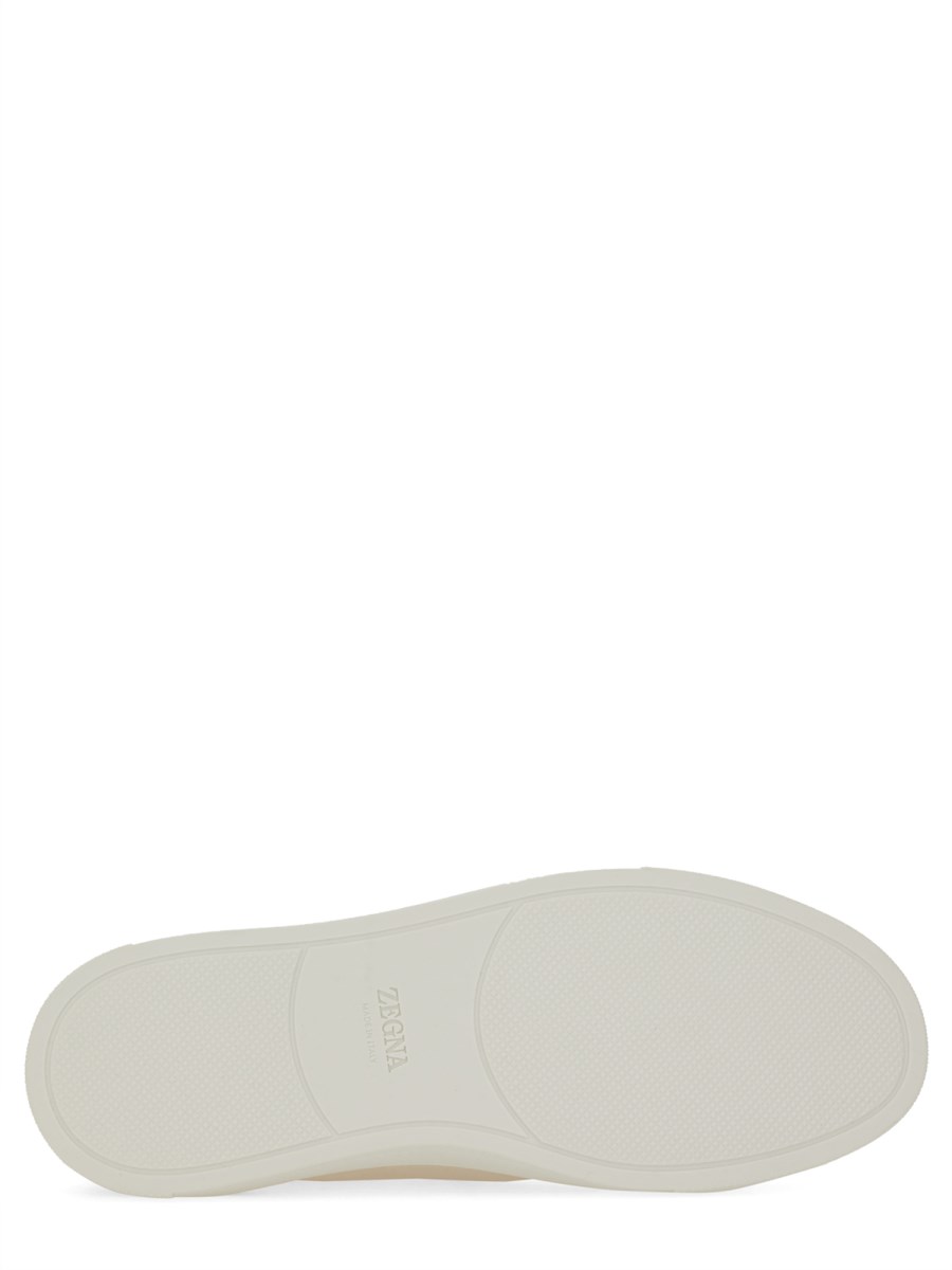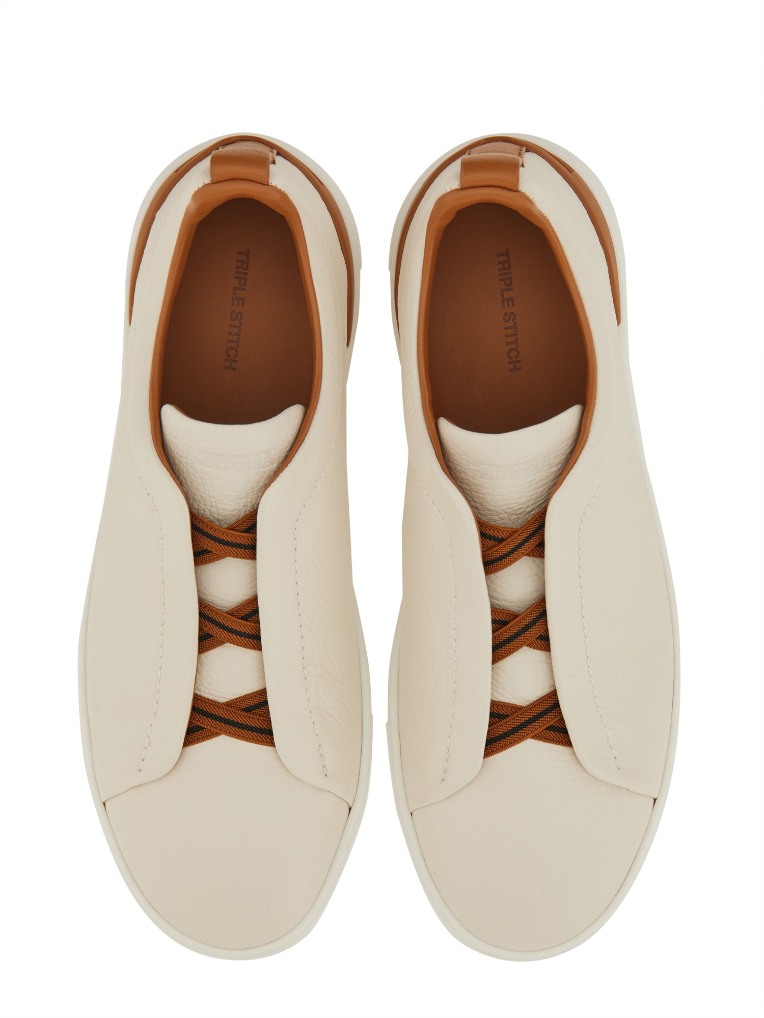 Le sneakers basse Triple Stitch™ in pelle di cervo bianco sporco sono un'interpretazione sofisticata delle calzature casual. I caratteristici elastici a tre incroci evocano le cuciture a mano delle nostre giacche sartoriali. La suola in gomma leggera è completata da uno spoiler color fogliame.