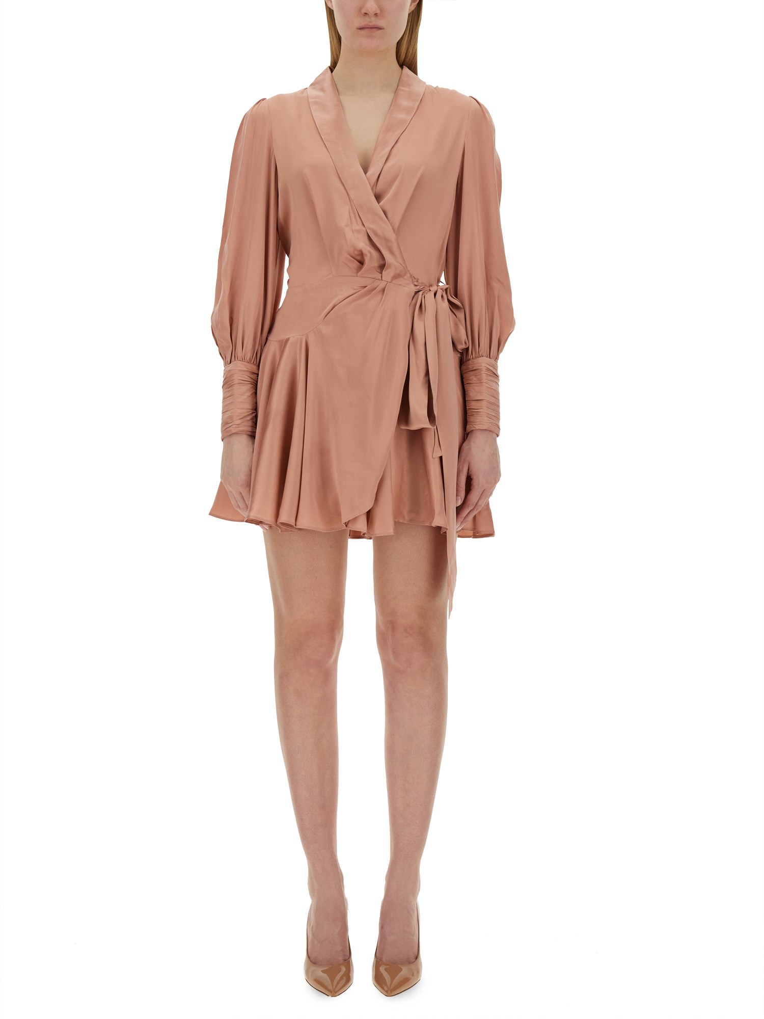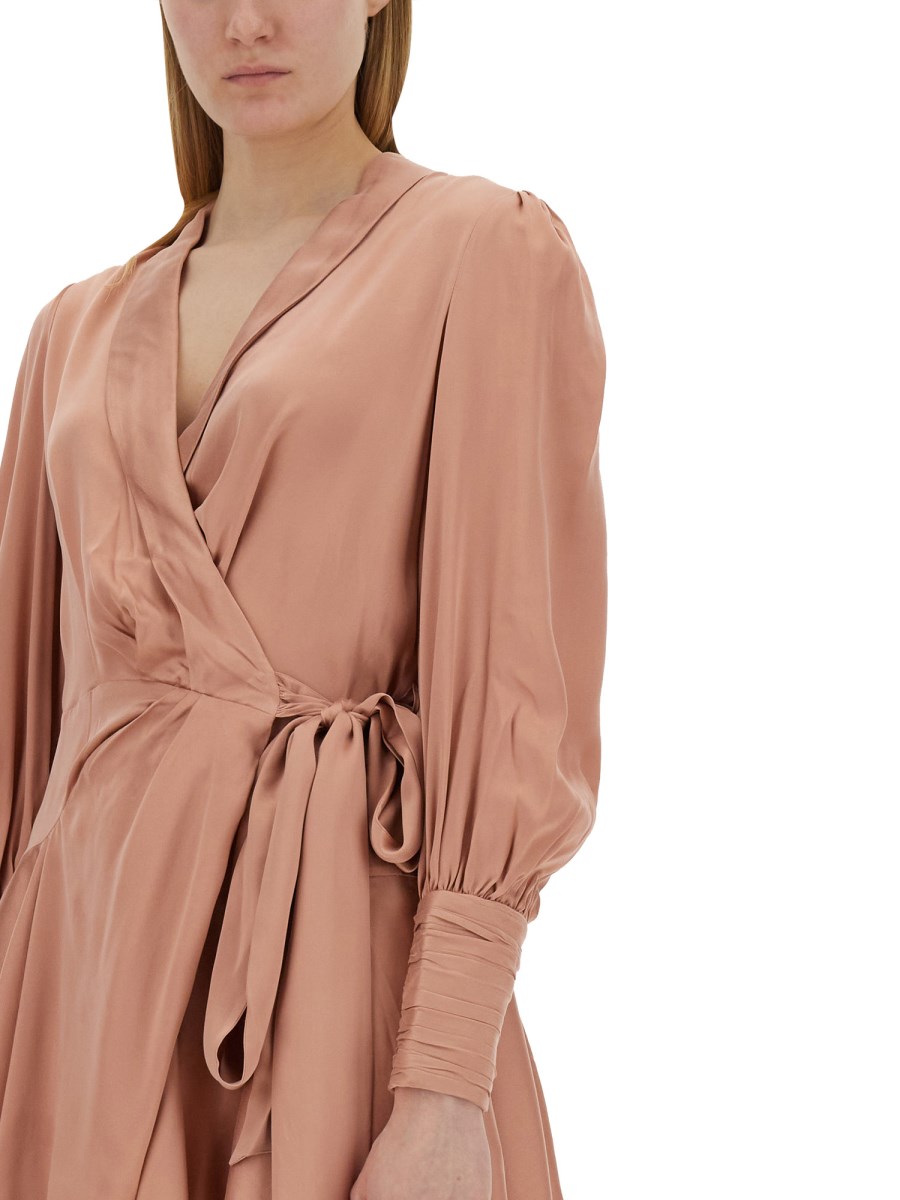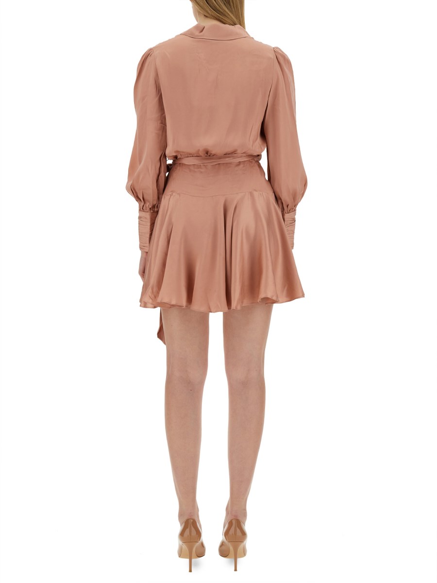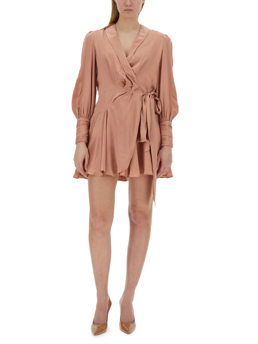 Elevate il vostro stile con il Silk Wrap Mini Dress in Dusty Pink della collezione Autunno 2023, Luminosity. Questo abito midi in seta presenta un'accattivante silhouette a portafoglio, impreziosita da una scollatura a V e da maniche a blusa con polsini allungati. La gonna a balze aggiunge un tocco di fascino al look.