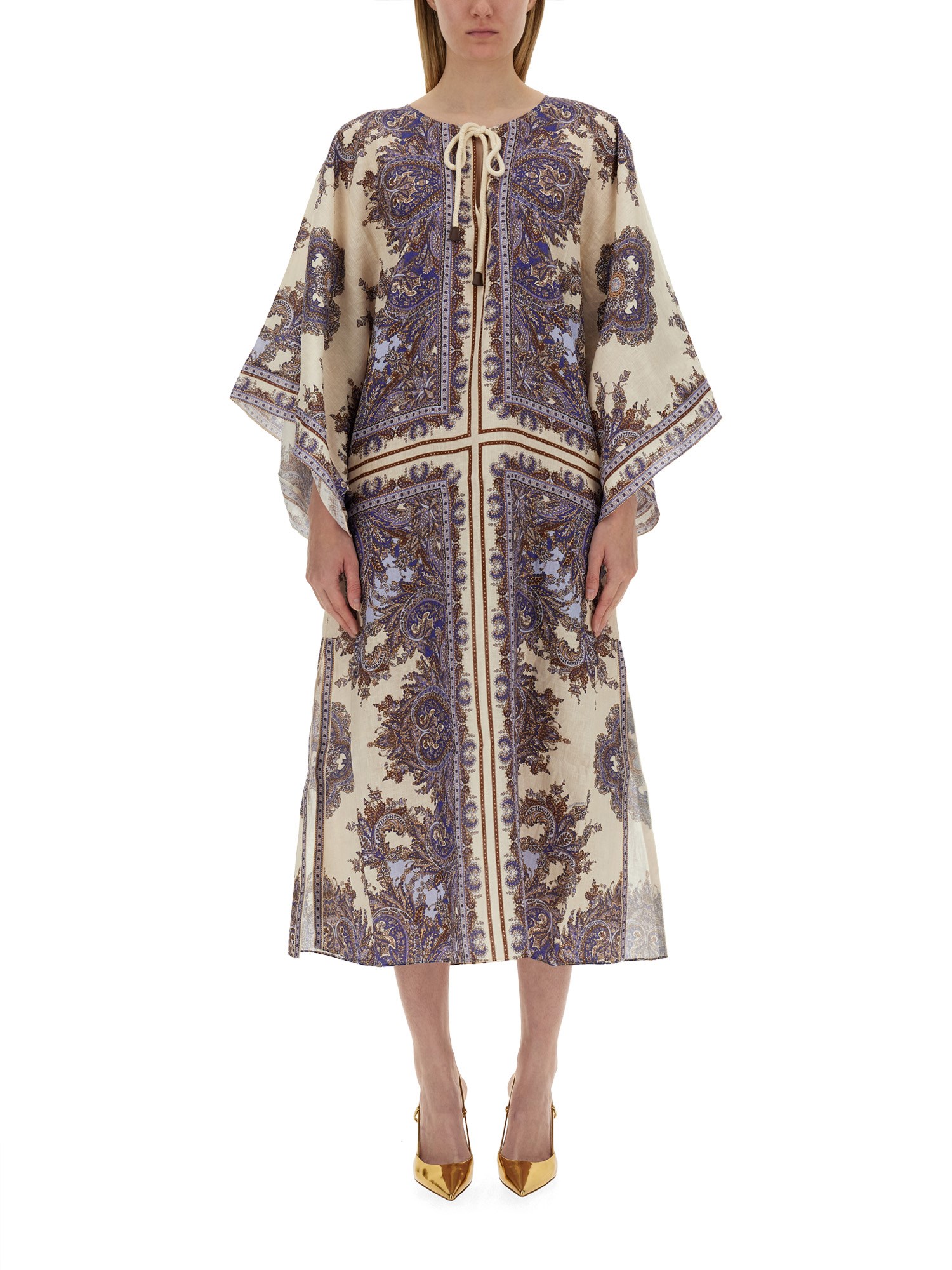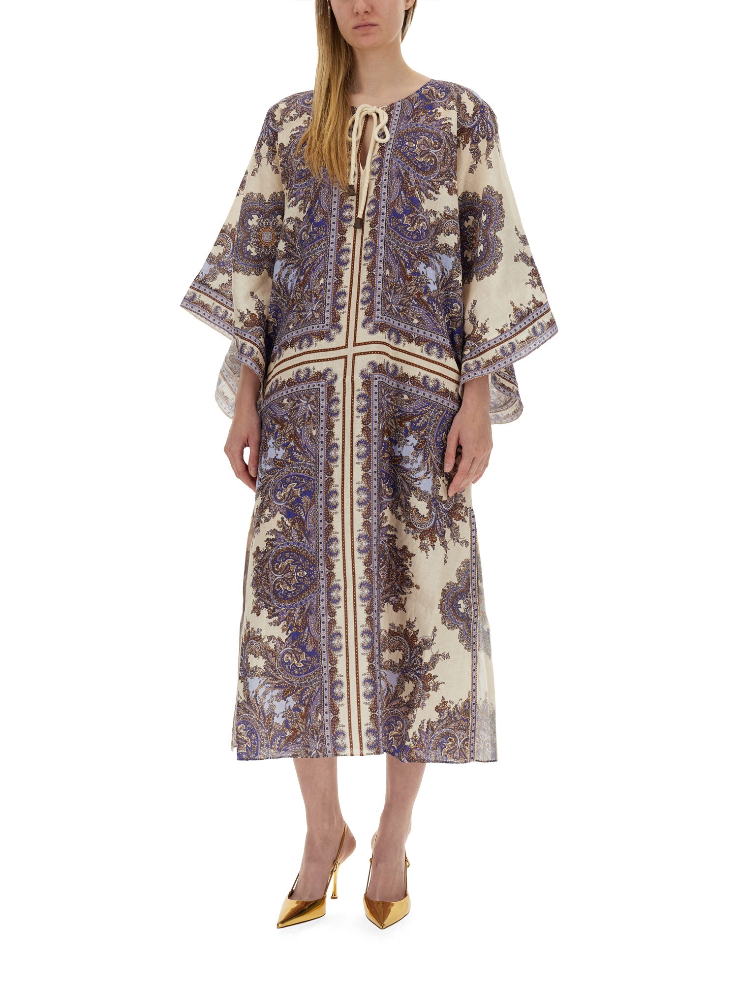 Il Kaftan Dress di Zimmermann incarna eleganza e raffinatezza, con una silhouette fluida che si adatta a tutti i tipi di corpo. Realizzato con materiali di alta qualità, presenta motivi intricati e colori vivaci, che lo rendono una scelta perfetta sia per le uscite casual che per gli eventi formali. L'abito ha una vestibilità comoda, che consente di muoversi agevolmente, mentre i dettagli di stile, come i delicati ricami e le maniche a balze, aggiungono un tocco di lusso. Ideale per la stagione calda, questo abito caftano è un'aggiunta versatile a qualsiasi guardaroba, in grado di passare senza sforzo dal giorno alla sera.