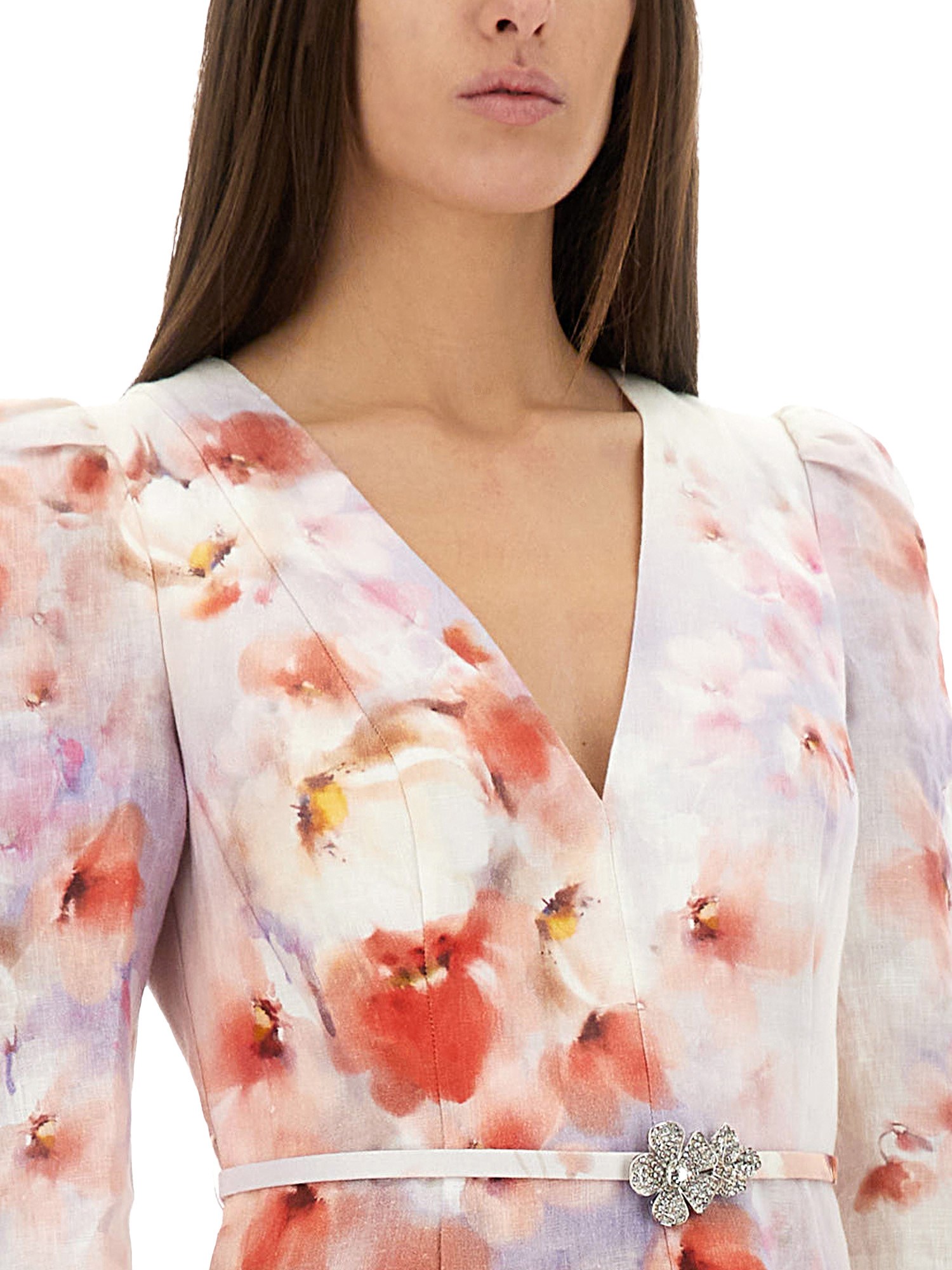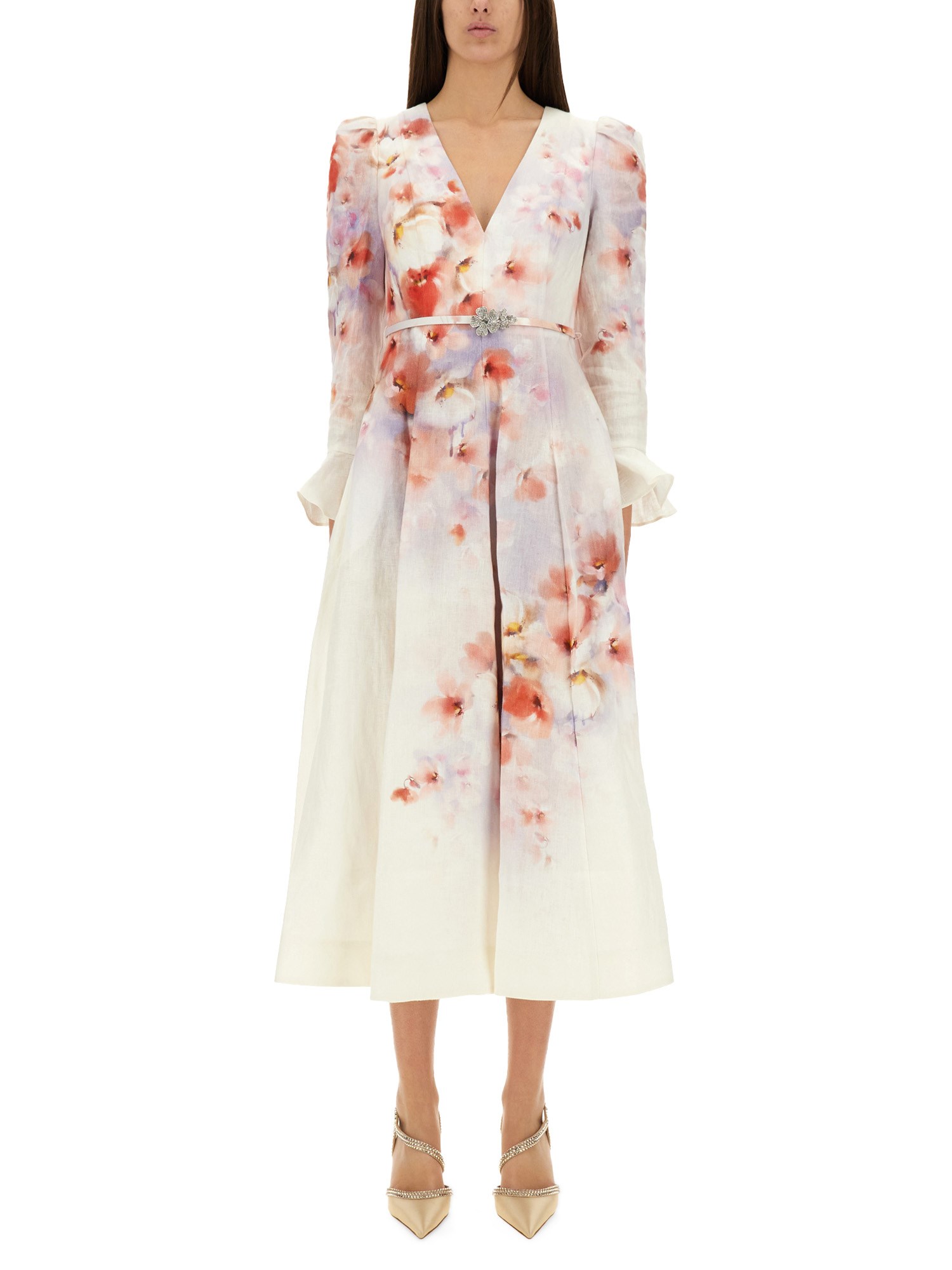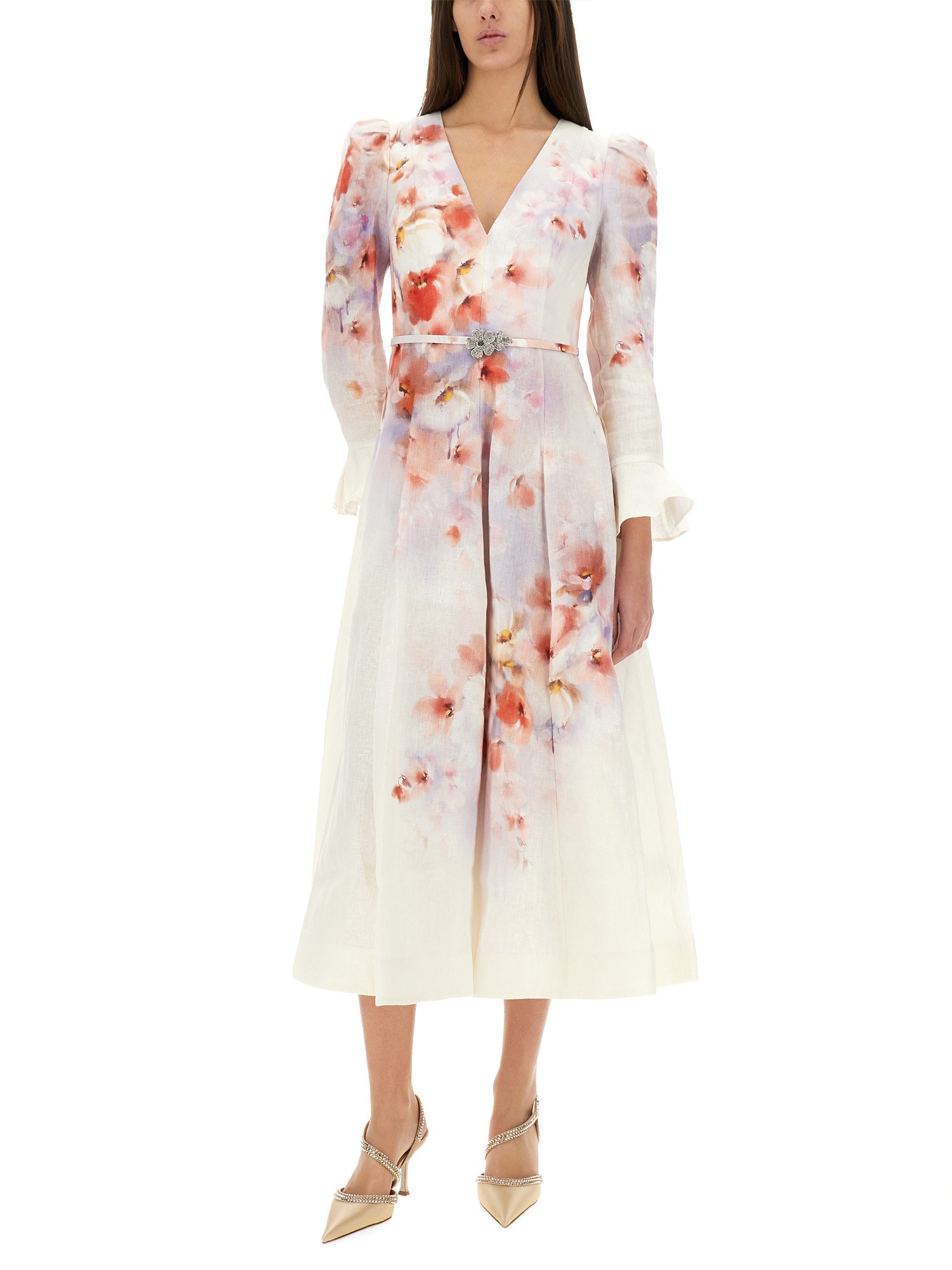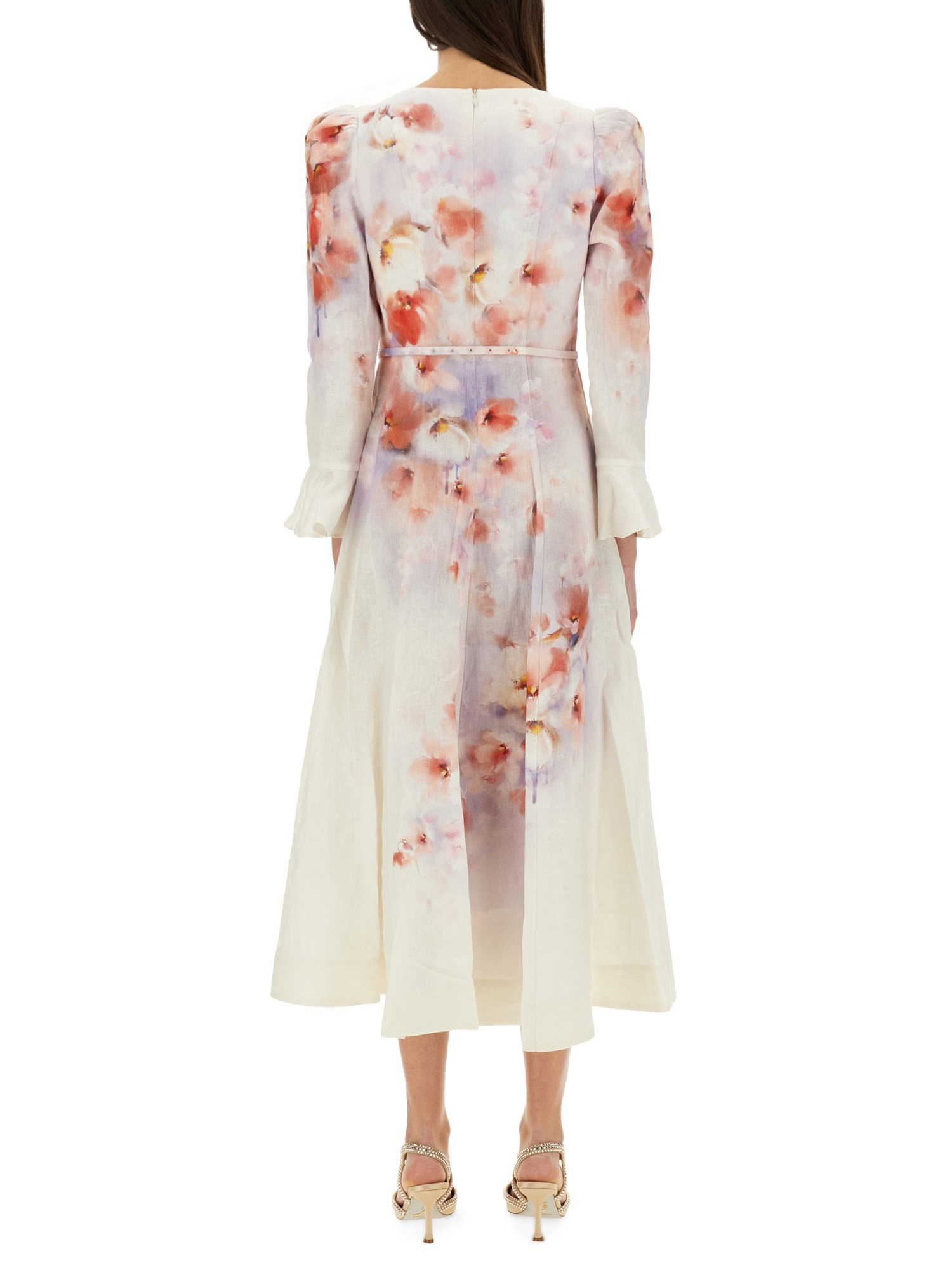 ABITO MIDI "CRUSH" IN LINO A MANICHE LUNGHE CON VOLANT