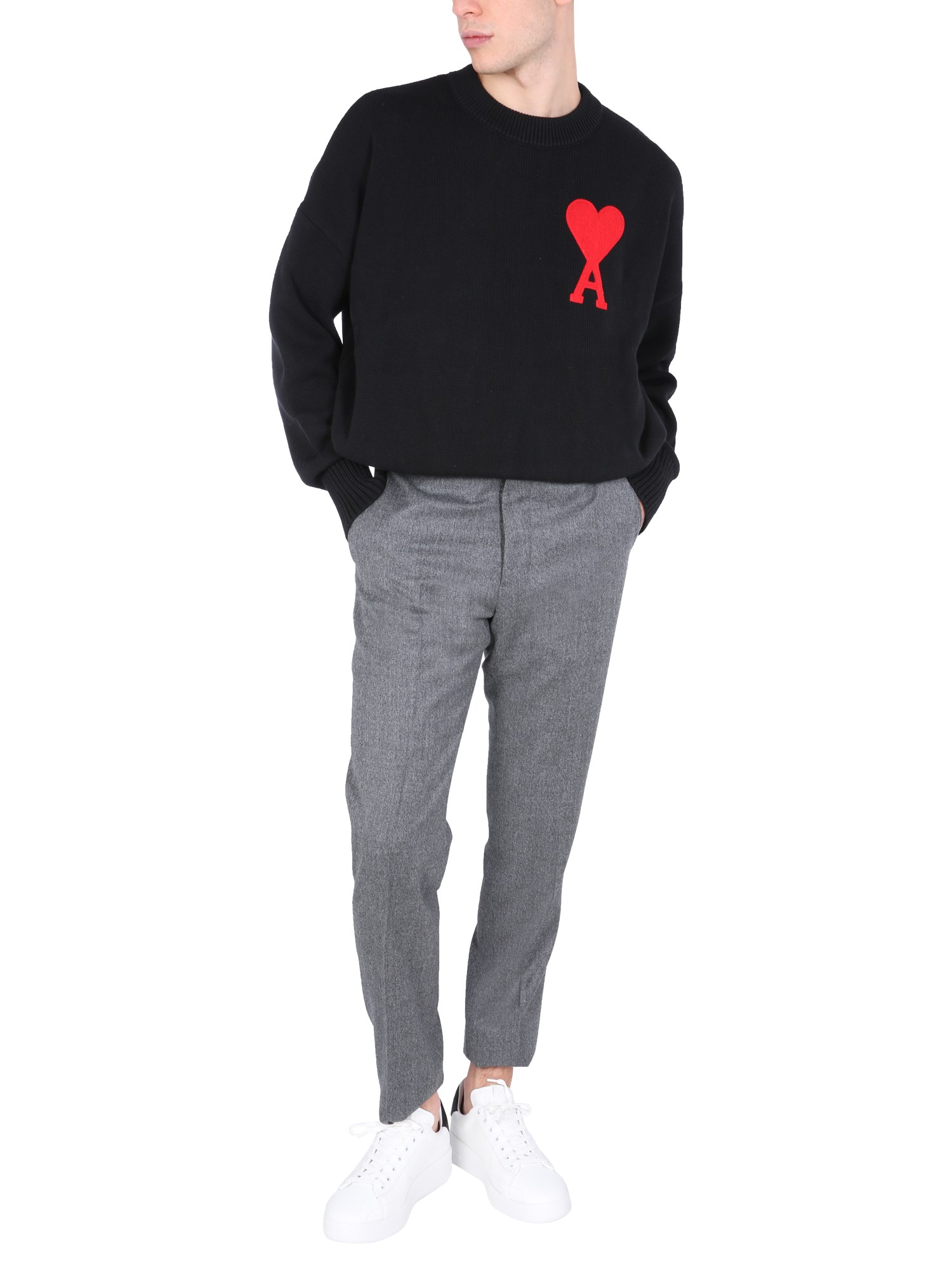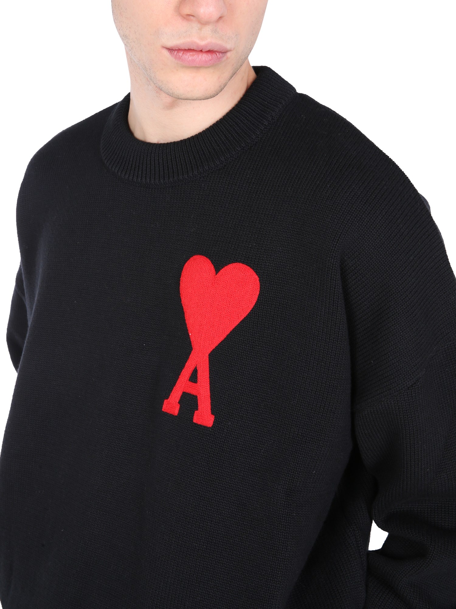 - GIROCOLLO - RICAMO A PUNTO CATENELLA AMI DE COEUR - OVERSIZE FIT- 85% COTONE, 15% LANA - IL MODELLO É ALTO 190 CM E INDOSSA LA TAGLIA L