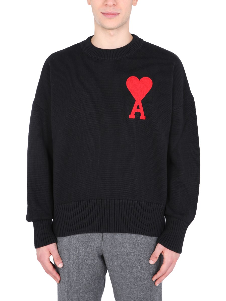 - GIROCOLLO - RICAMO A PUNTO CATENELLA AMI DE COEUR - OVERSIZE FIT- 85% COTONE, 15% LANA - IL MODELLO É ALTO 190 CM E INDOSSA LA TAGLIA L