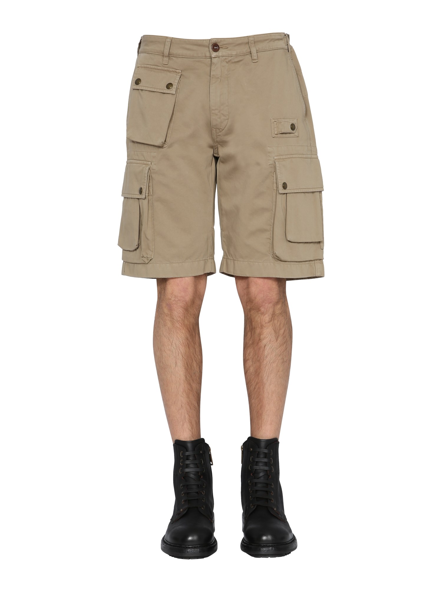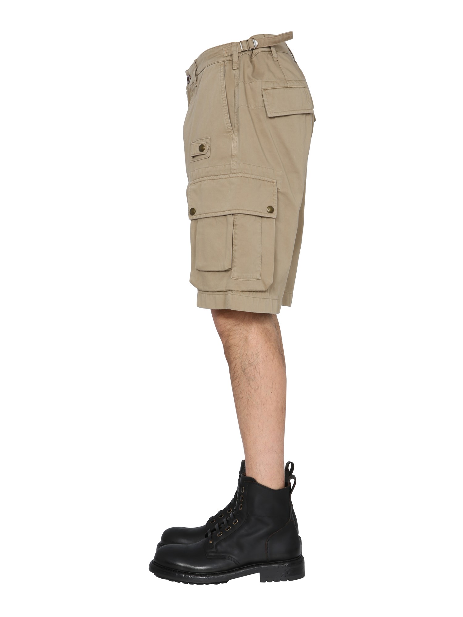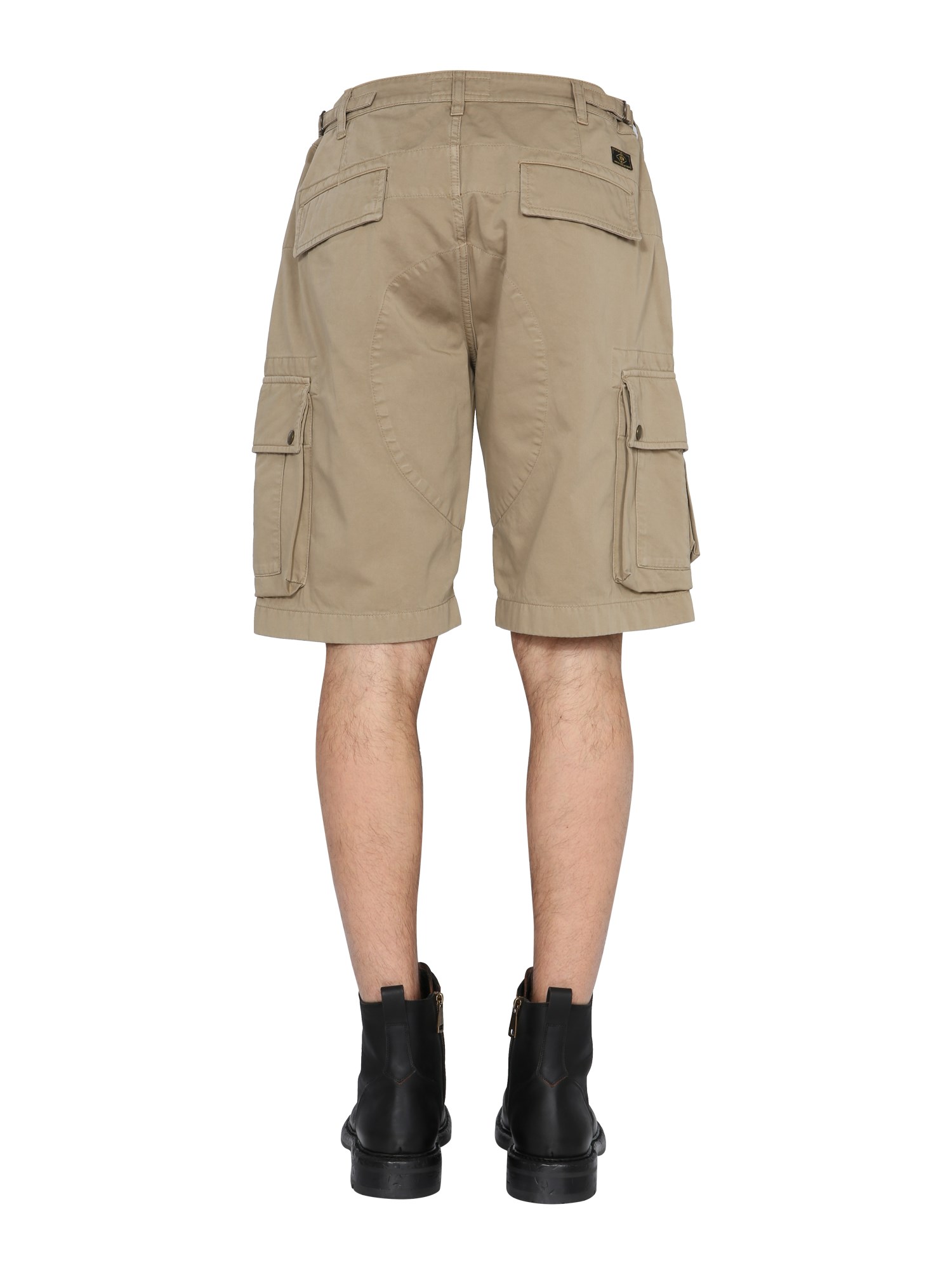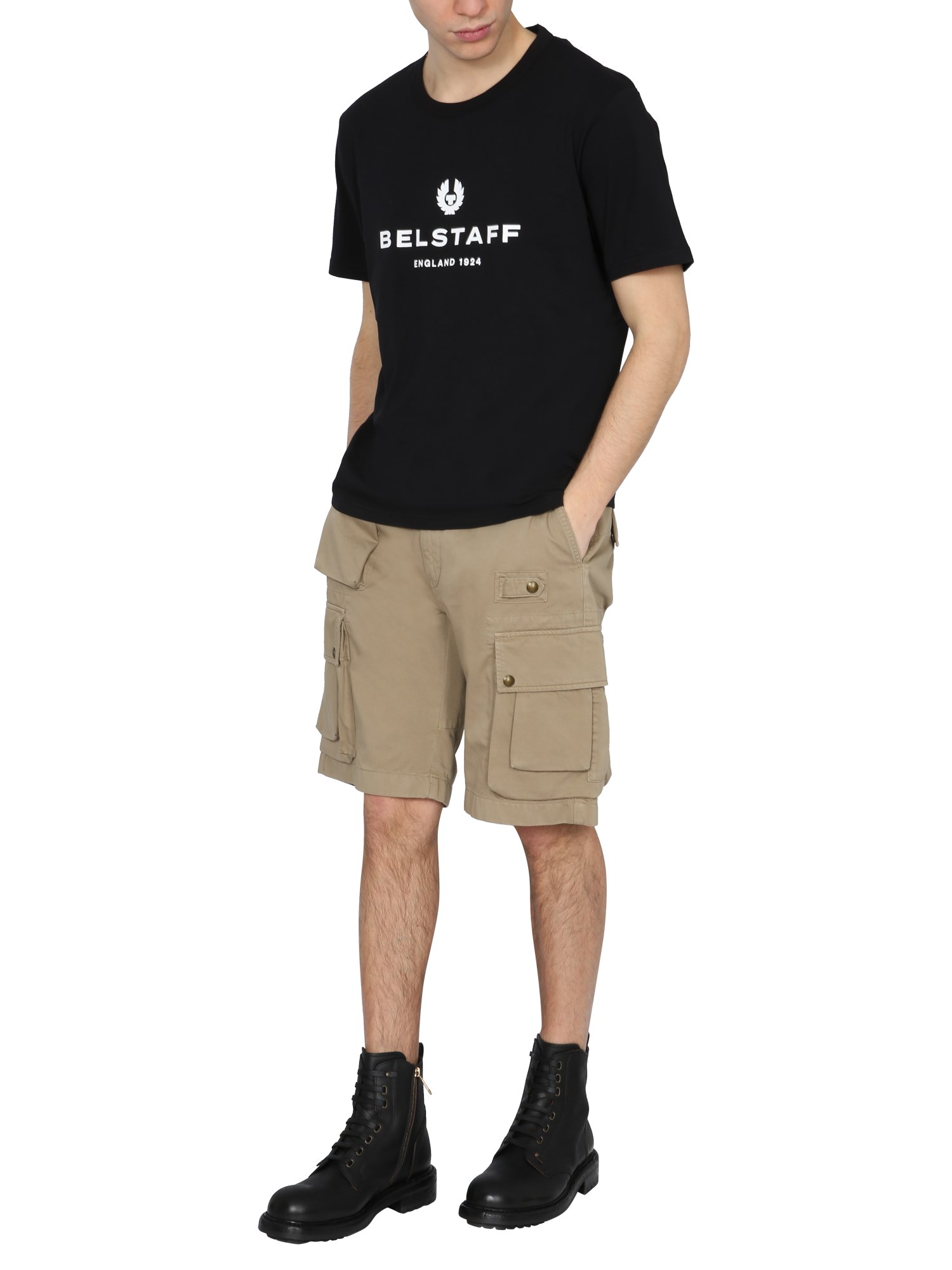 Try everyday warm-weather go-to cargo Castmaster Bermuda by Belstaff for a clean and chic look. Made from pure cotton, it has concealed zip and button closure. It also has cargo pockets and side straps with buckles. The cargo Bermuda T-shirt looks cool for casual outings or pool parties.