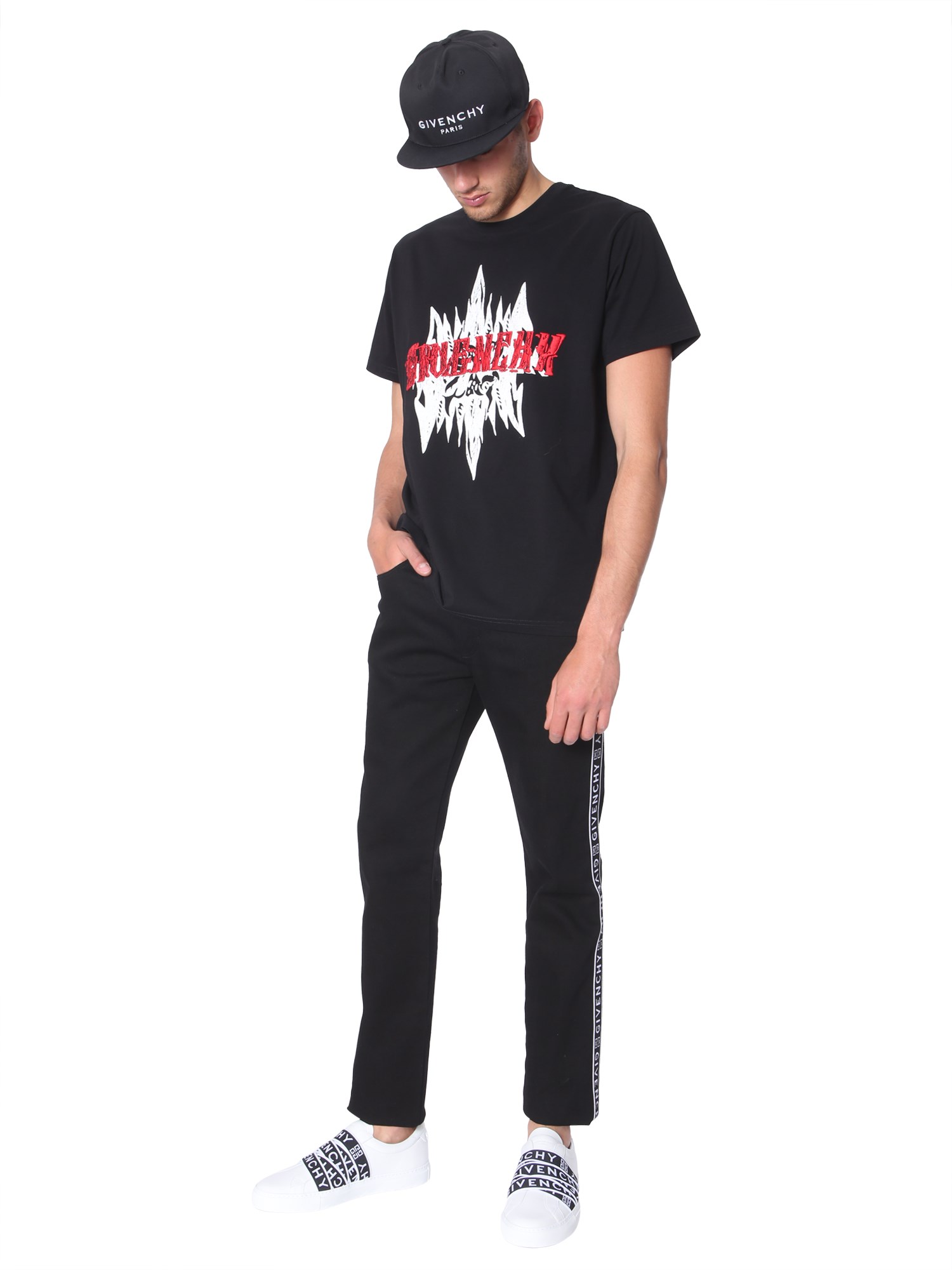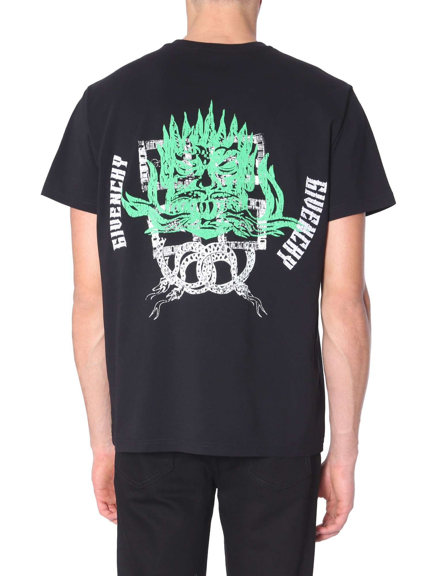 This summer, add this Givenchy snake embroidered T-shirt to your wardrobe. The t-shirt is made from good quality to ensure breathability during summer. With its short sleeves and round neck, this garment will become your go-to T-shirt in no time. It features an embroidered front panel aptly complementing its bold colour scheme.