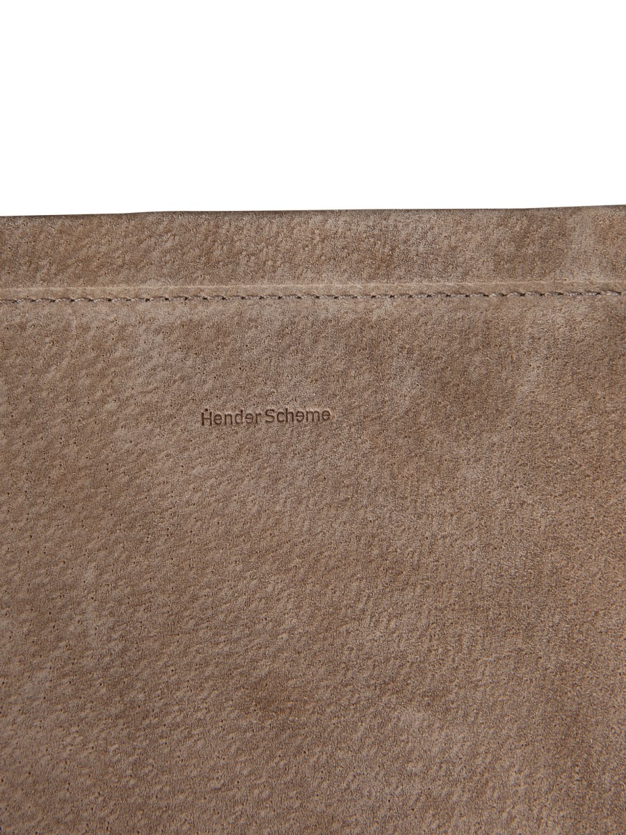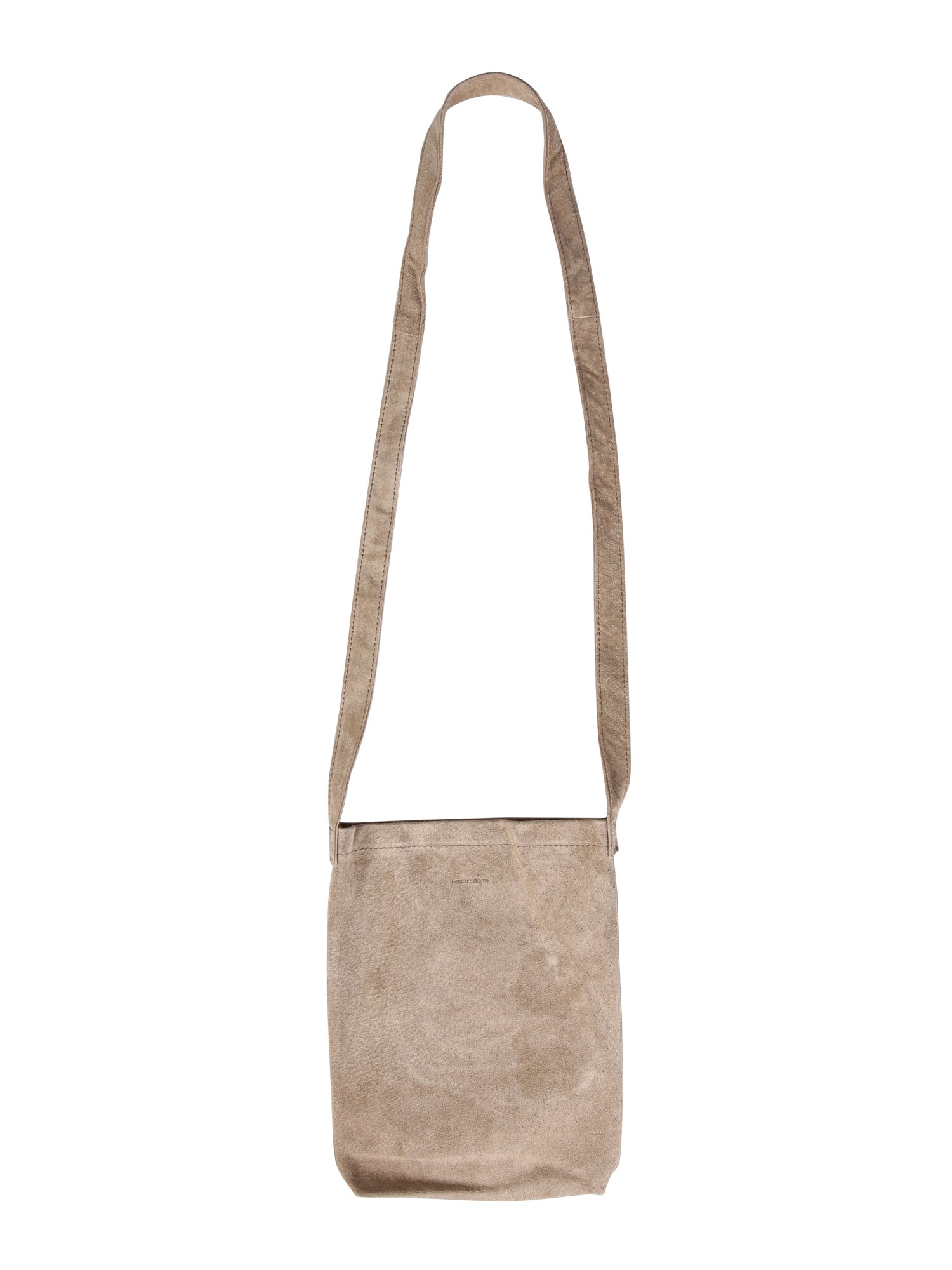 Carry your essentials in this small shoulder bag by Hender Scheme. Perfect for casual outings, this bag includes a shoulder strap and flap closure. It is made of pure pig skin that is tear-resistant and light. This bag flaunts a beautifully embossed logo at the front for a style statement.