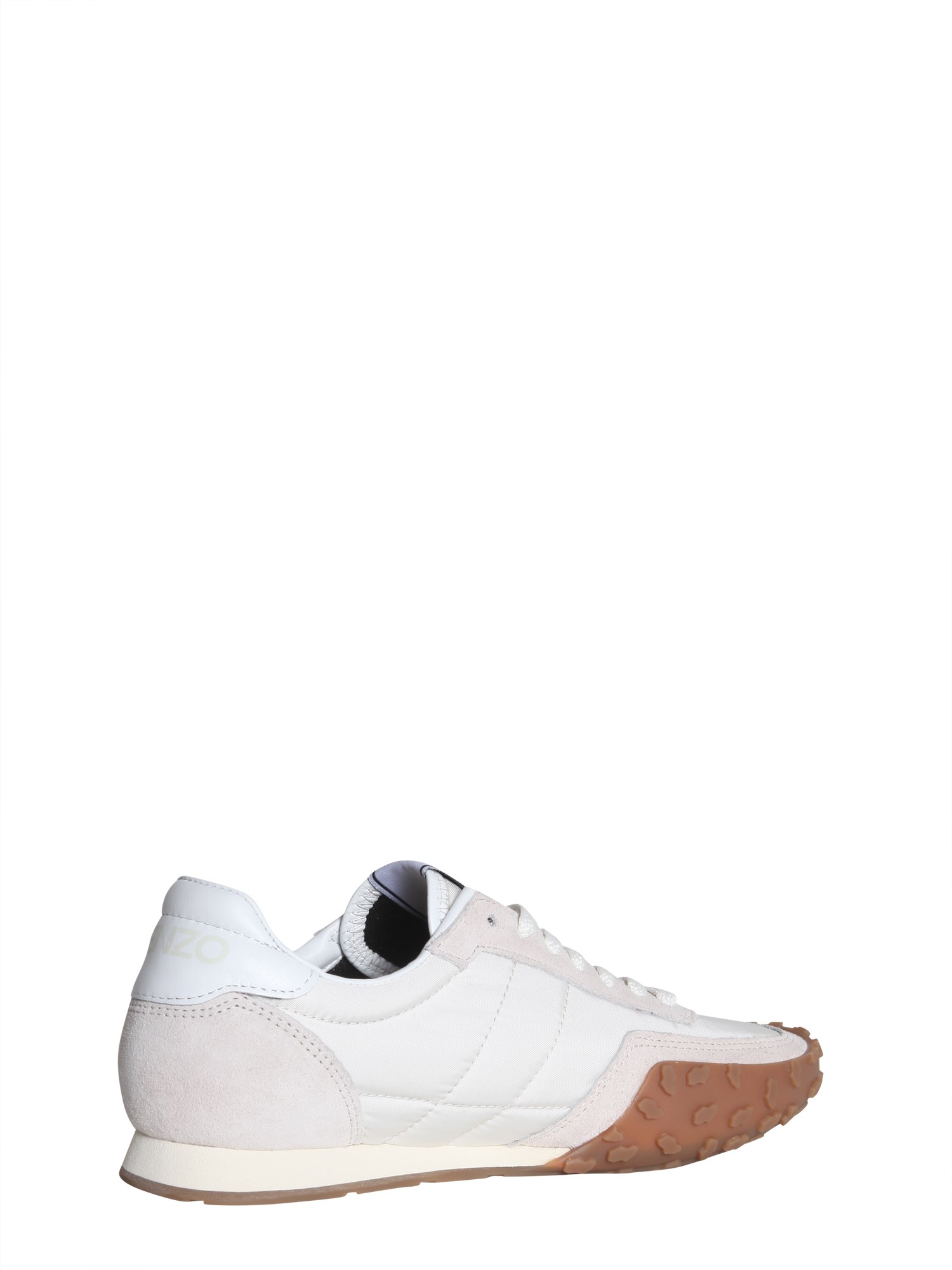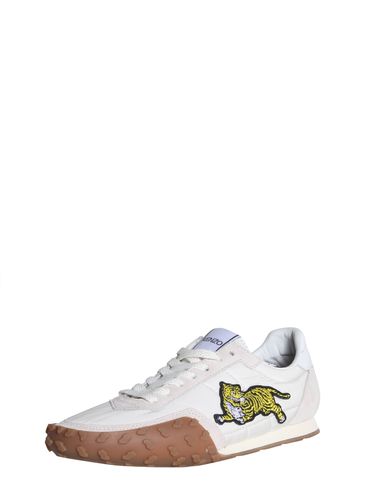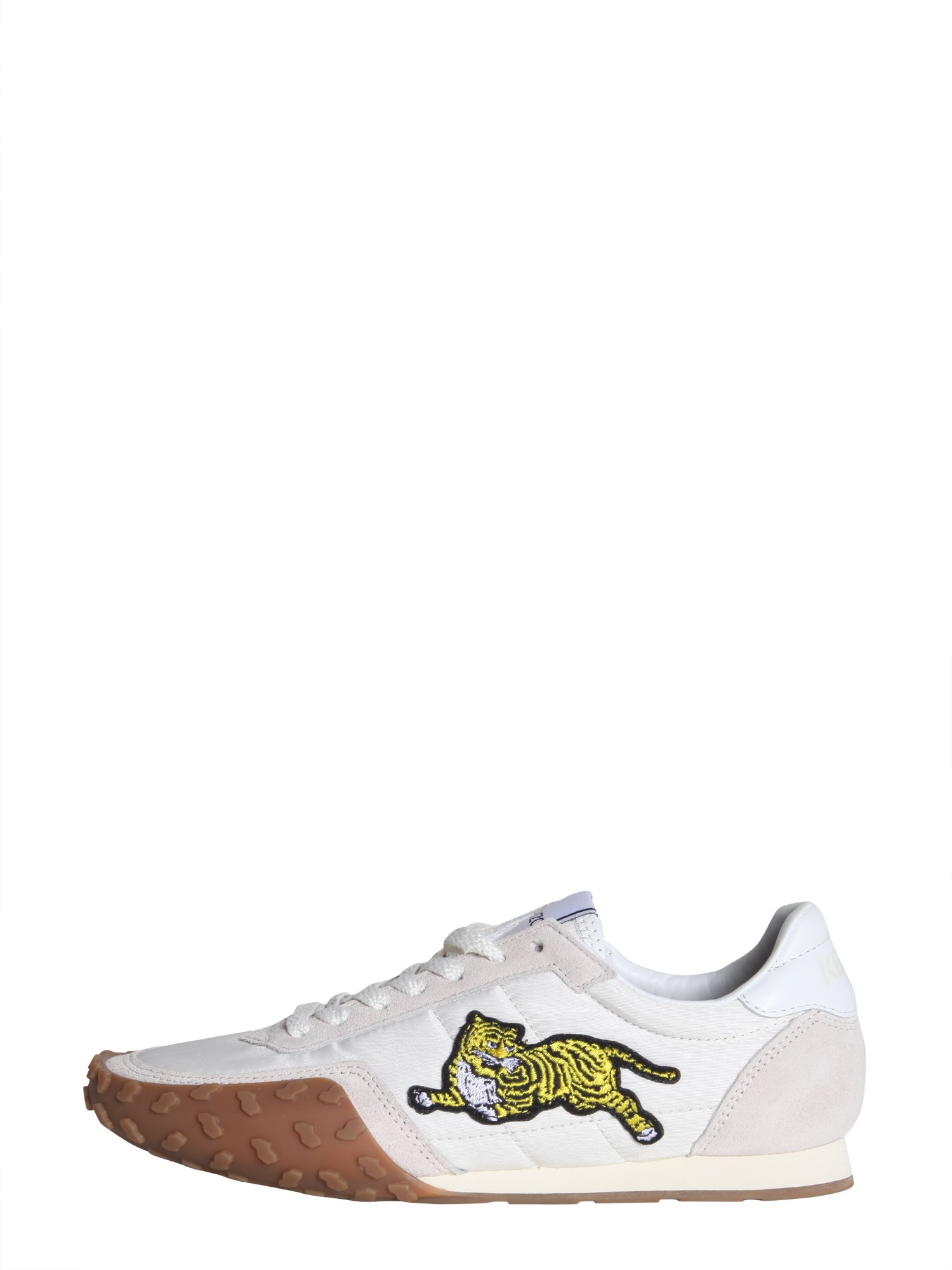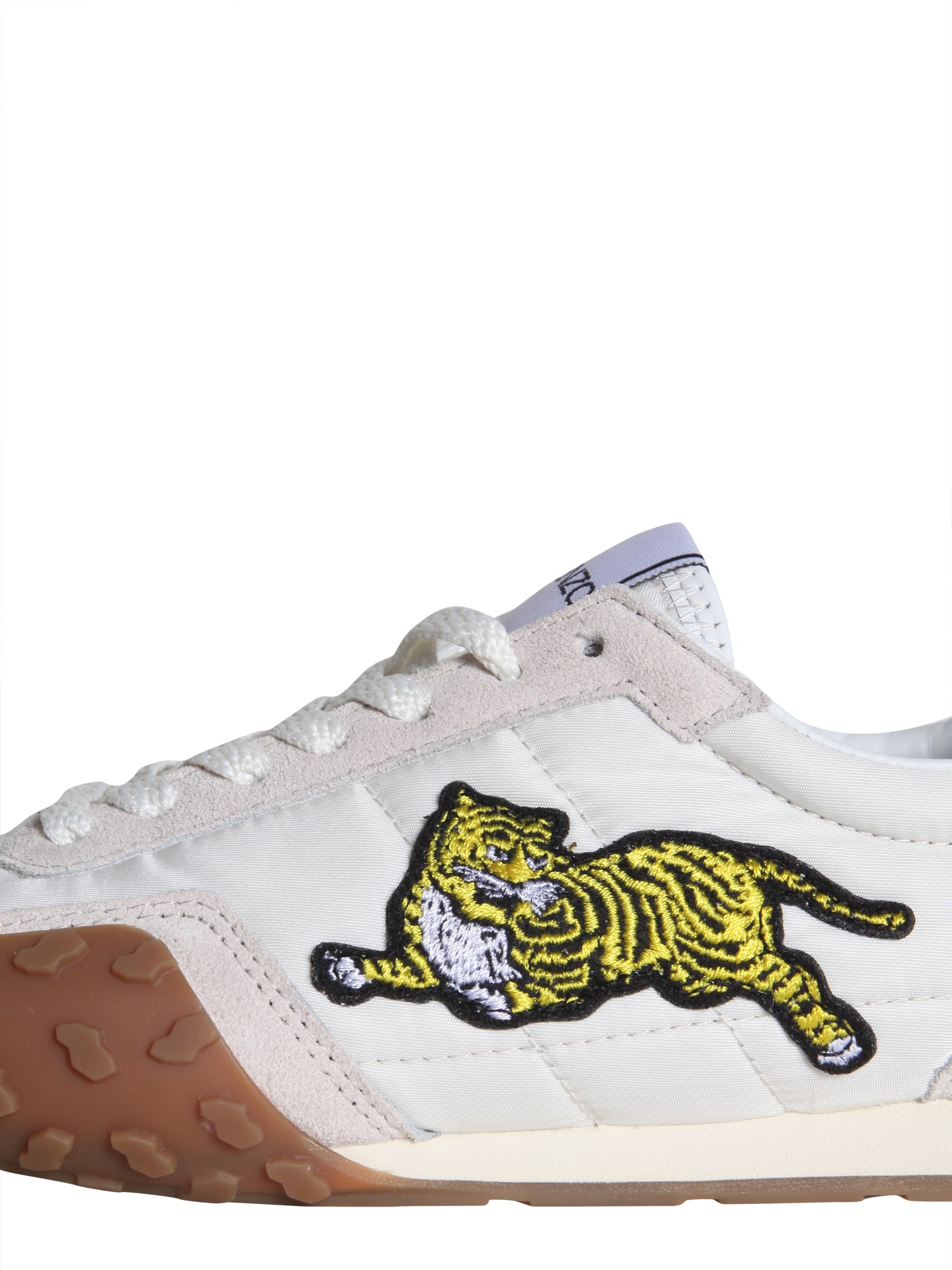 Hit the ramp in style by wearing this pair of sneakers designed by Kenzo. The sole is made of rubber that offers a better grip and slip resistance, while the upper part is crafted from a blend of 90% polyamide and 10% acrylic that lends it a bold finish. Besides, it has a lace up fastening, which ensures a proper fit. The suede and nylon inserts along with an embroidered tiger add grace to the sneaker’s minimal appearance.