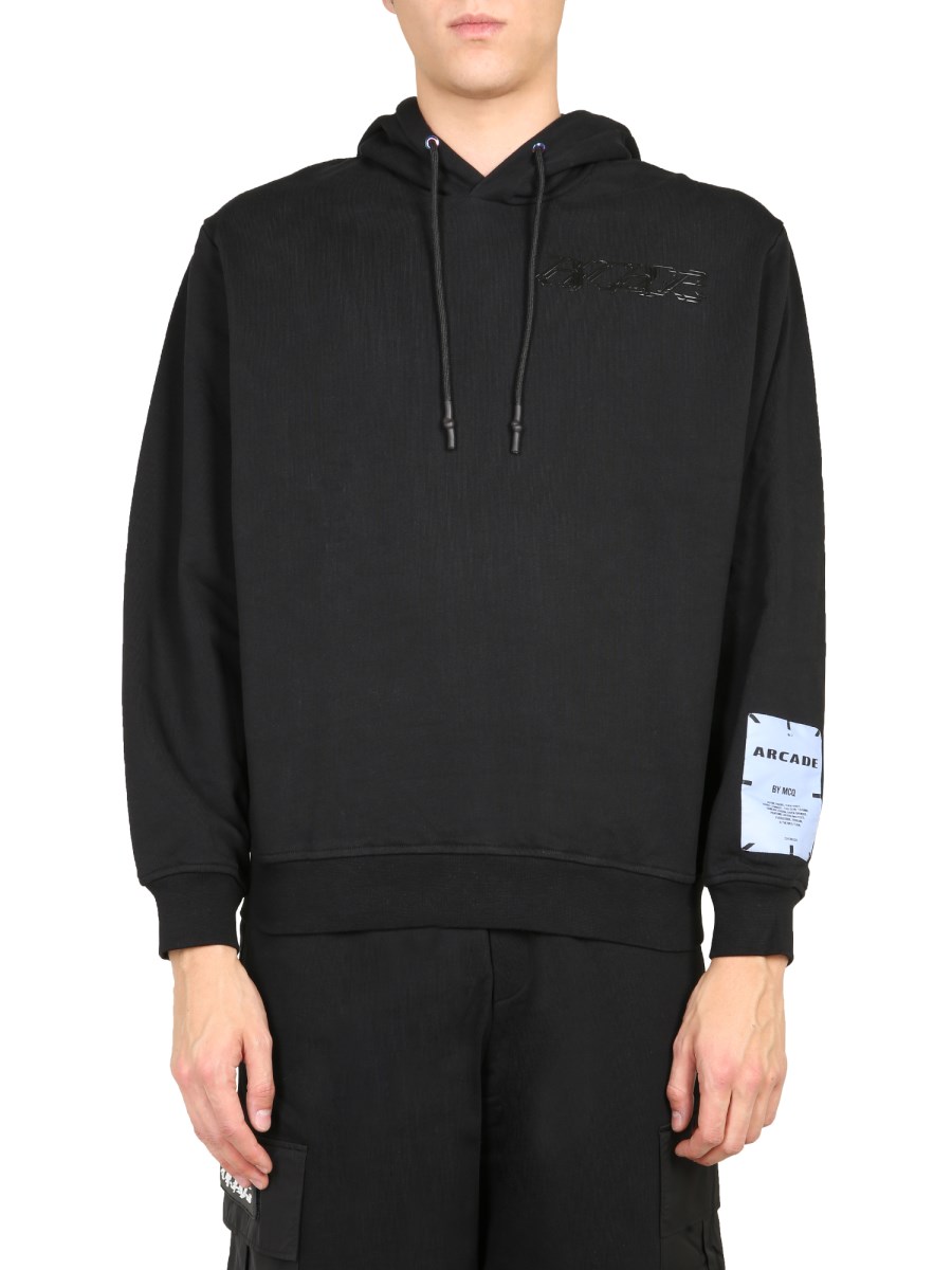Make a stunning impression when you head out and make heads turn when you wear this dashing Hoodie brought to you by Alexander McQueen’s diffusion line McQ. This sweatshirt comes with a hood with a coulisse closure along with ribbing at the cuffs and the bottom. It features the brand logo on the front and a trendy print on the backside. It is made with 100% cotton and available in an oversize fit.