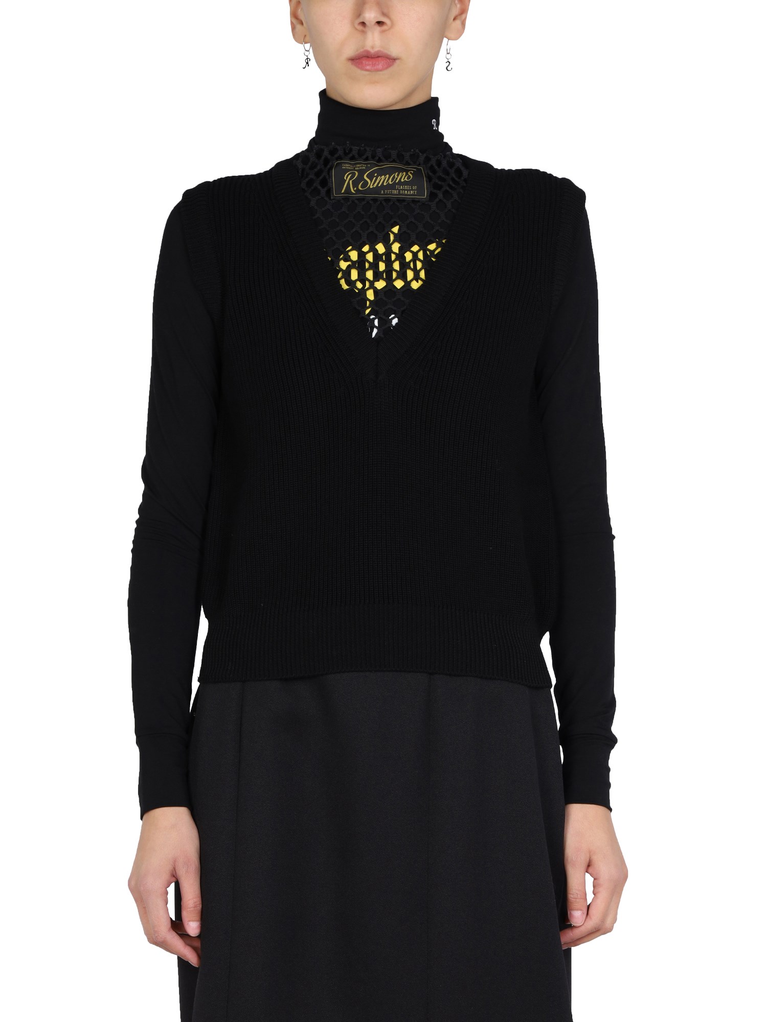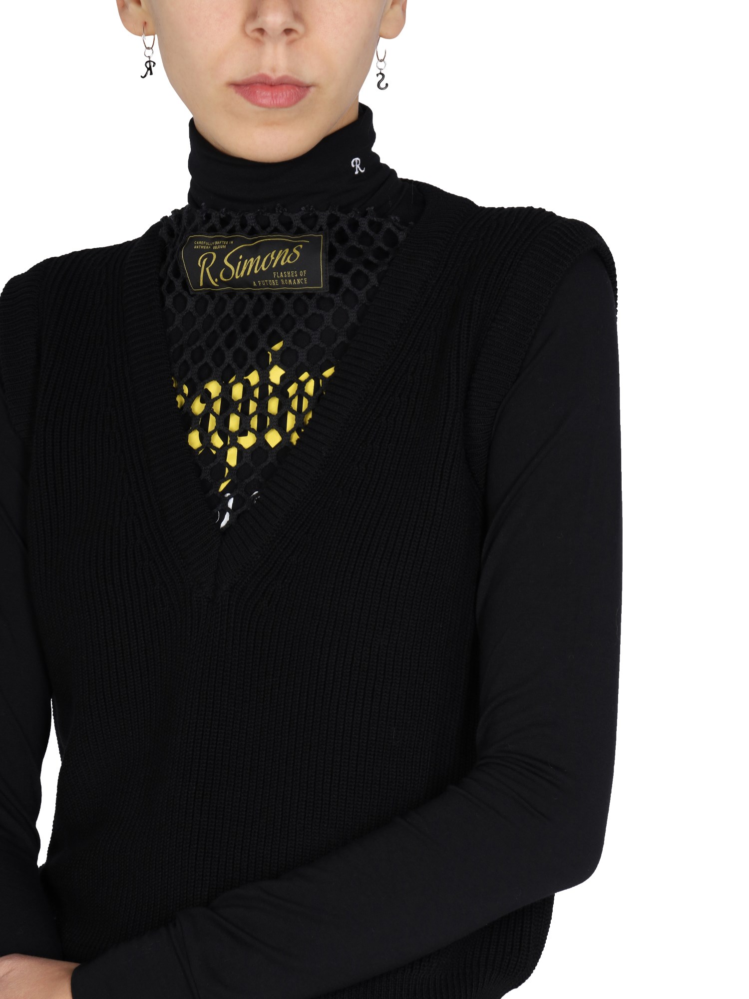 - V-NECKLINE- FRONT MESH DETAIL- 100% COTTON- MADE IN ITALY- MODEL IS 180 CM TALL AND WEARS SIZE S