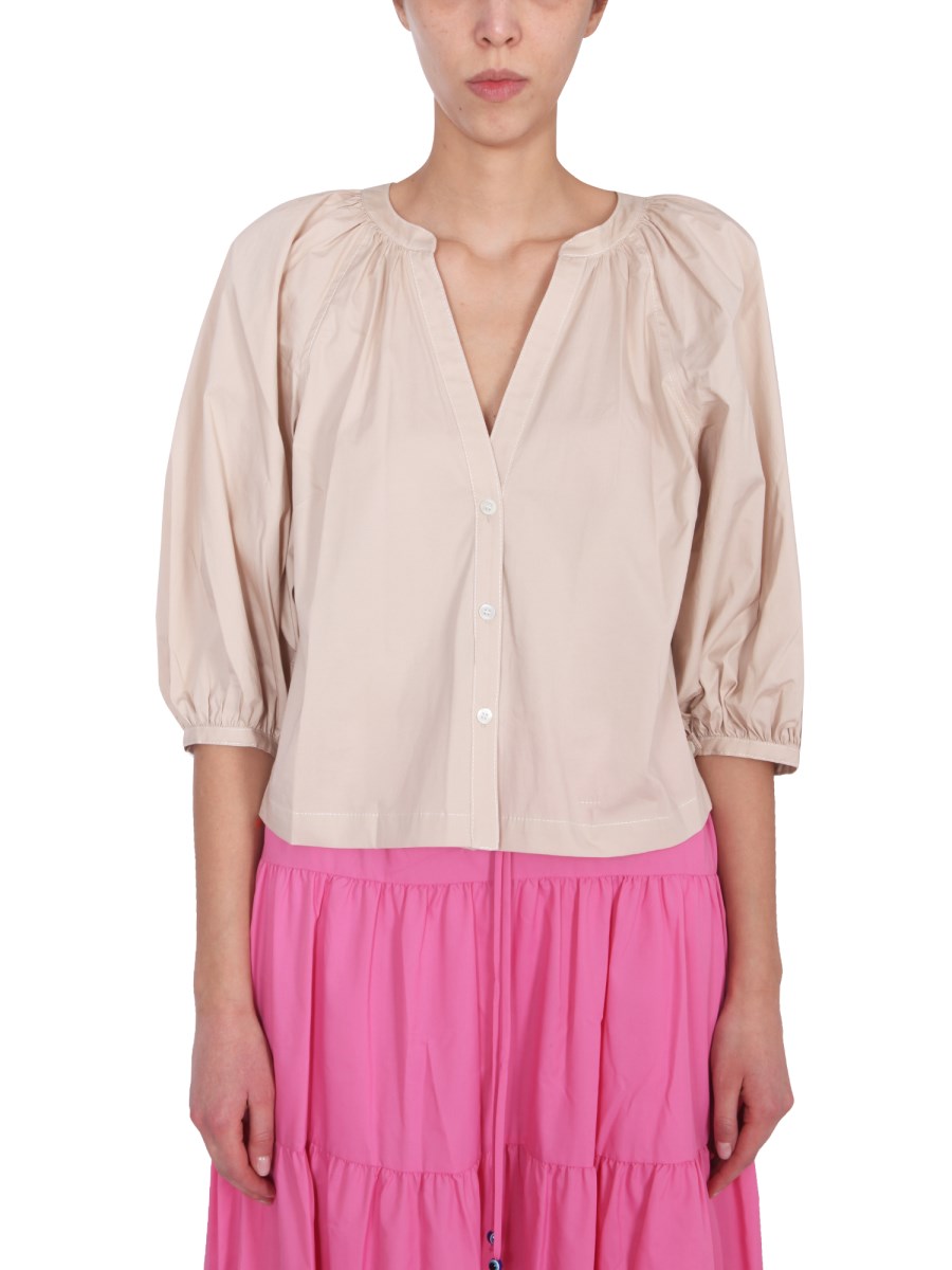 It's no secret that this long sleeve shirt by Staud is the perfect choice for a chilly day. This shirt is made of 100% cotton and has a wide sleeve that is perfect for keeping you warm. The material is lightweight and comfortable to wear, so you can wear it to work or to a casual event. Pair this shirt with a skirt or slacks for a classic look.