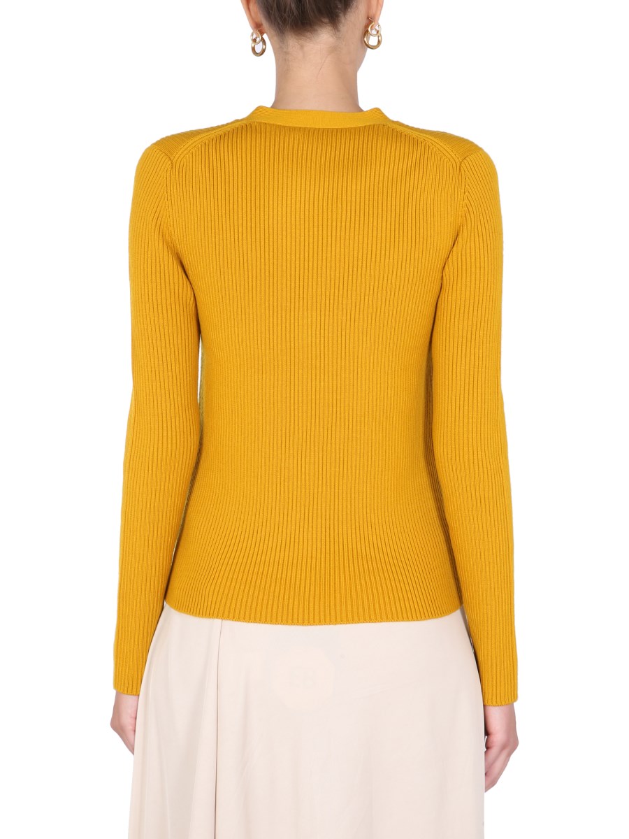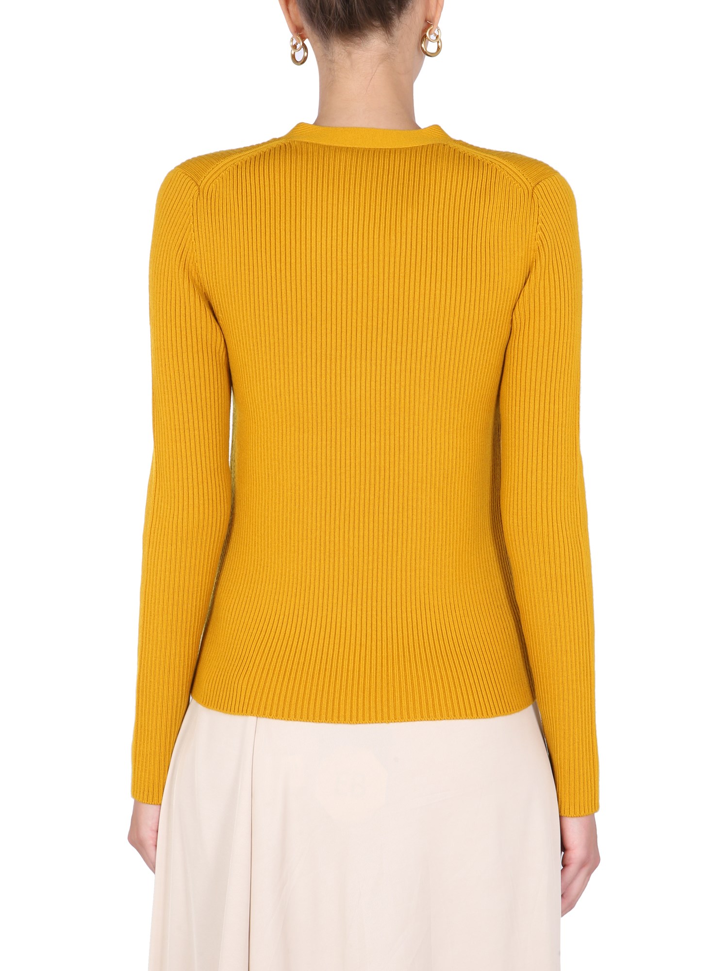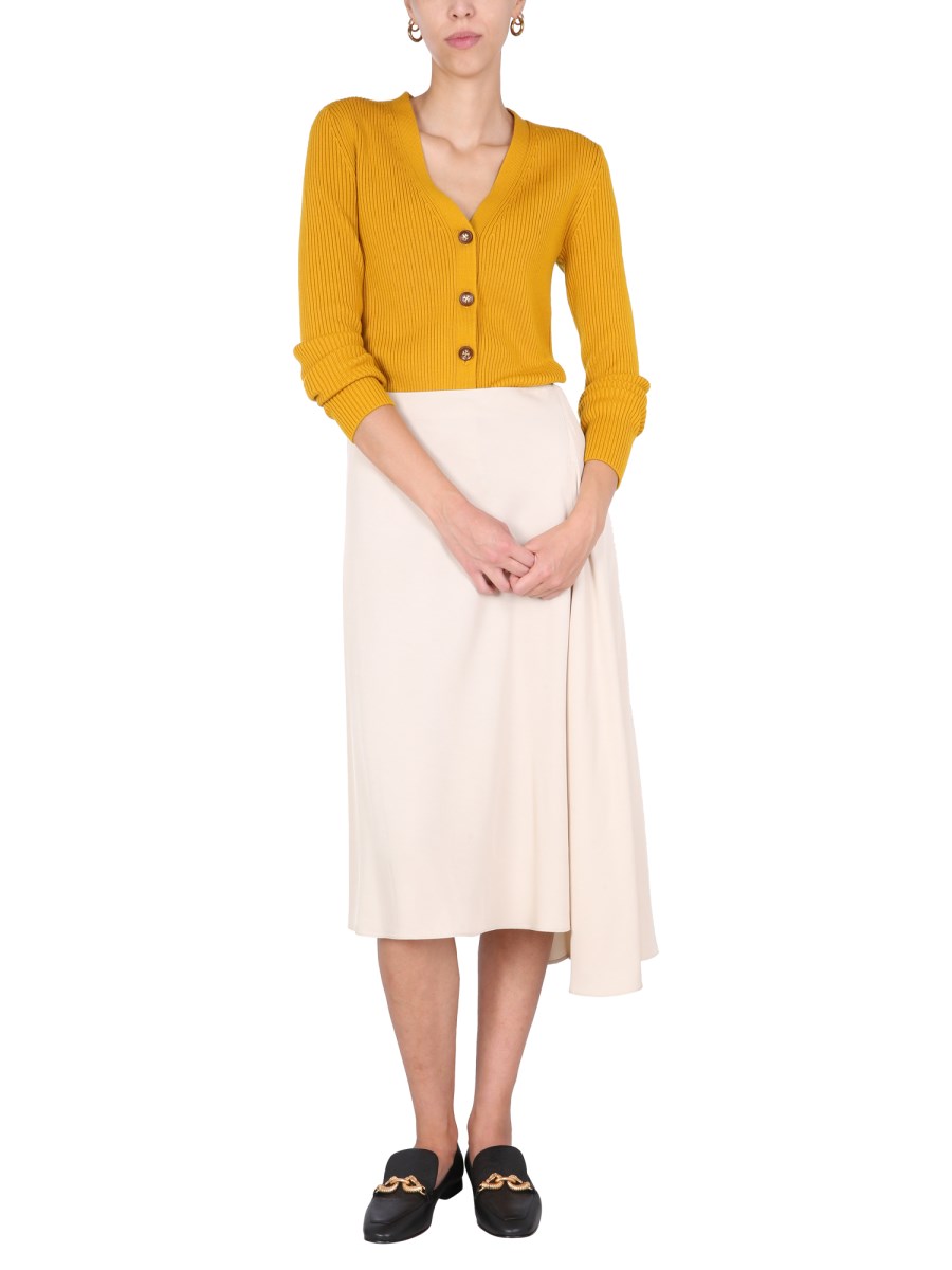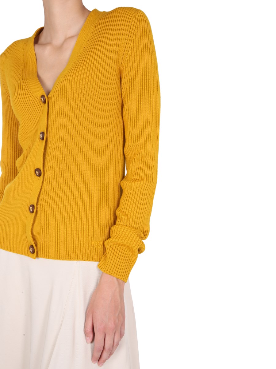 - V-NECK- FRONT BUTTON CLOSURE- RIBBED - 94% MERINO WOOL, 1% ELASTANE, 5% OTHER FIBERS- MODEL IS 180 CM TALL AND WEARS SIZE S